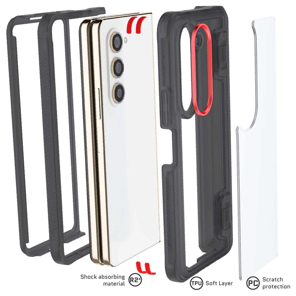 Nuestro estuche transparente COVERT para Galaxy Fold 5 es perfecto para cualquiera que busque un estuche elegante y de primera calidad que proteja su teléfono contra caídas y rayones. La cobertura total de las bisagras y el diseño liviano lo convierten en una excelente opción para cualquiera que busque un estuche que sea duradero y cómodo. El diseño claro le permite mostrar su Galaxy y al mismo tiempo protegerlo de daños.