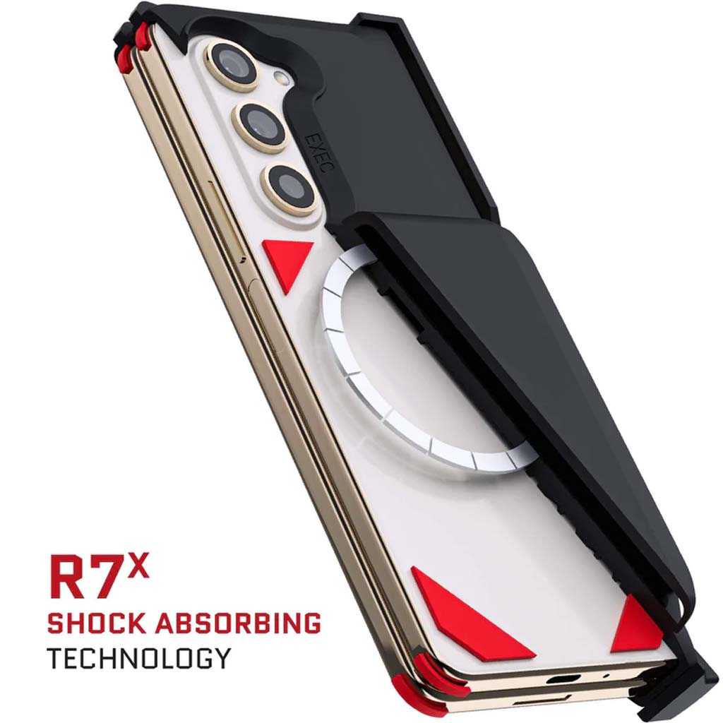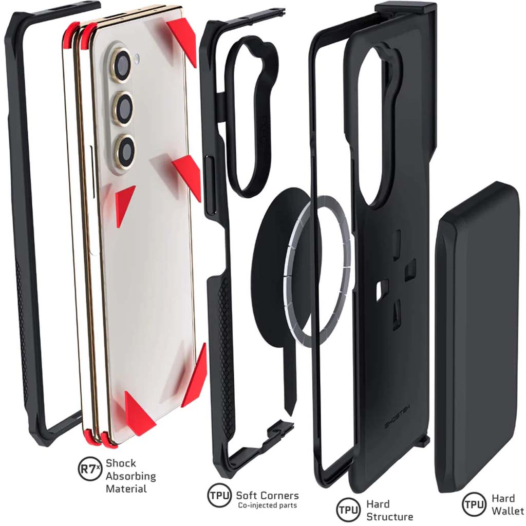 Funda tipo billetera magnética EXEC ZFold5 mejorada. Este estuche brinda comodidad, protección y estilo y ha sido rediseñado y moldeado con precisión para el Galaxy Z Fold5. El tarjetero Fold5 puede guardar de forma segura sus tarjetas de crédito, documentos de identidad o tarjetas de transporte. Hemos diseñado esta billetera para que se pueda conectar y desconectar fácilmente usando nuestros nuevos imanes MagnaLink que también admiten algunos accesorios MagSafe.