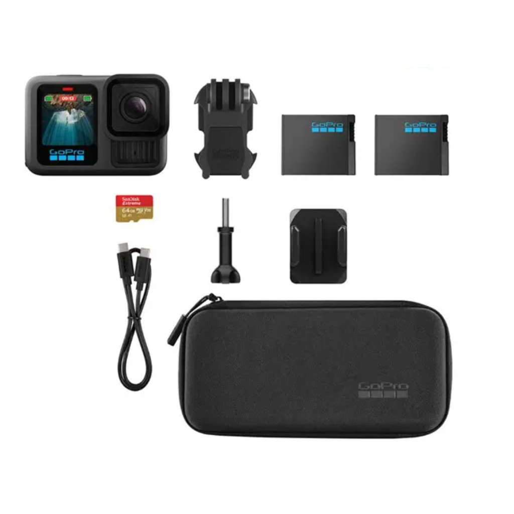 La HERO13 es la cámara para todos los creadores. Además de ofrecer el mejor video 5.3K60 de su clase y la legendaria durabilidad de GoPro, es compatible con los nuevos lentes de la serie HB.1 Estos lentes amplían sus capacidades de captura para las tomas POV más envolventes, la capacidad de enfocar más cerca que nunca, un desenfoque de movimiento fácil de lograr con filtros de densidad neutra y metraje anamórfico cinematográfico. Una nueva batería Enduro más potente extiende el tiempo de grabación en todas las condiciones climáticas, mientras que un sistema de montaje actualizado le da a la HERO13 Black más flexibilidad de montaje que cualquier GoPro anterior. Con funciones esenciales de GoPro, que incluyen la galardonada estabilización de video HyperSmooth 6.0, videos destacados automáticos y la capacidad de cargar automáticamente su metraje a la nube,2 la HERO13 Black es una poderosa combinación de tecnología de vanguardia y posibilidades creativas infinitas.