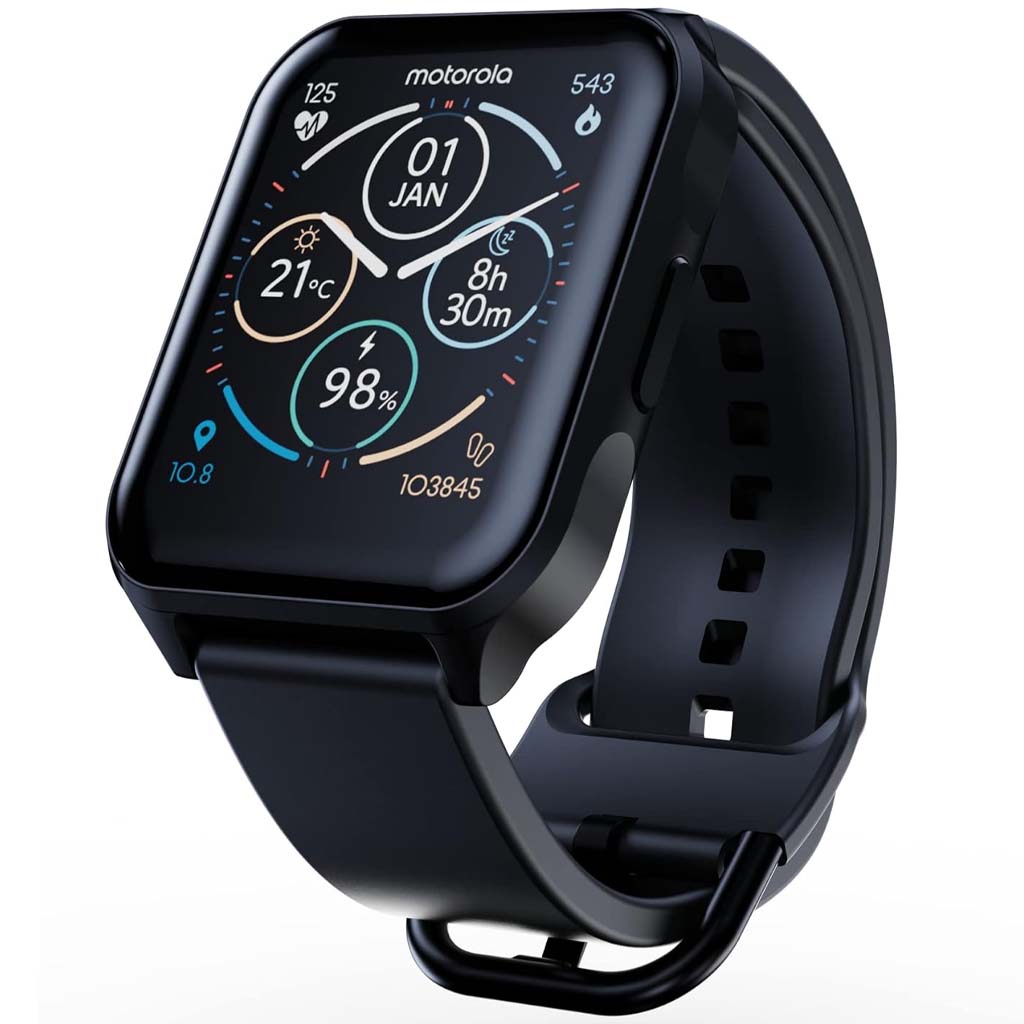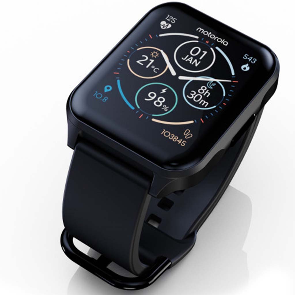 Moto watch personaliza con mas de 85 esferas de reloj administre sin esfuerzo su salud, sus actividades y su dia. El reloj cuenta con una elegante caja de aleación de zinc con una correa de uso activo transpirable que es intercambiable.