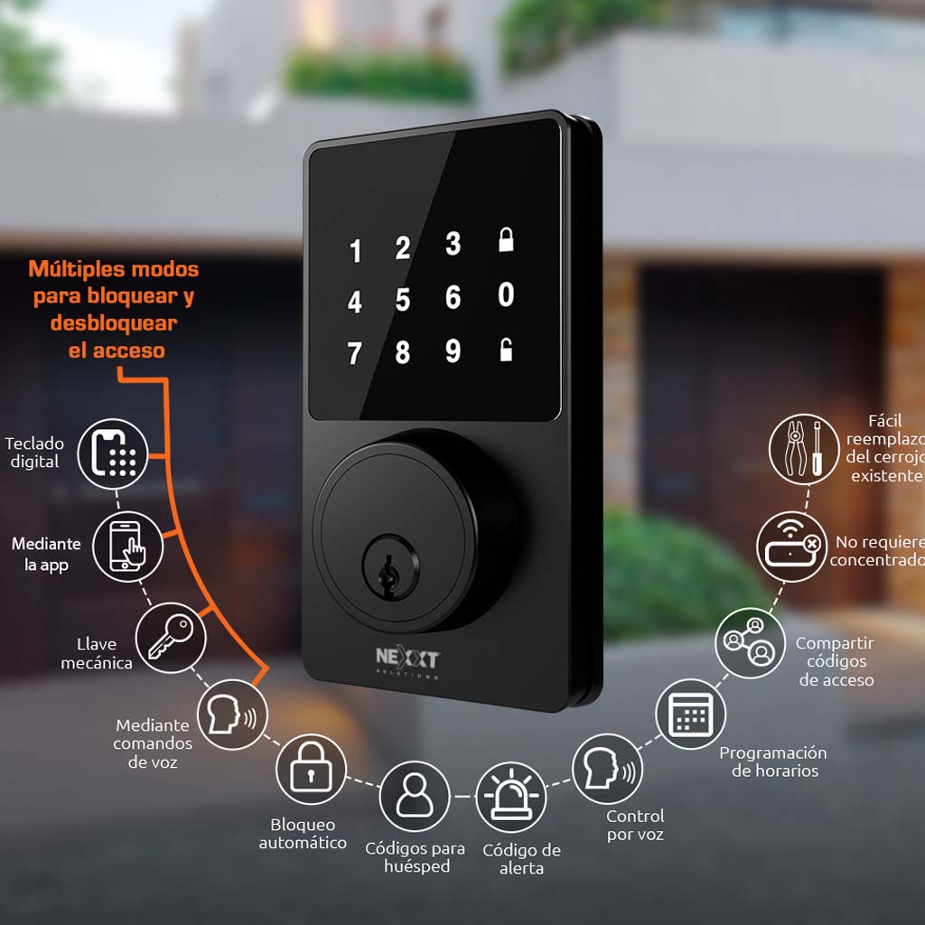 Cerradura inteligente con conexión wi-fi, múltiples modos para bloquear y desbloquear el acceso. La nueva llave de tu seguridad, convierte tu teléfono en las llaves de tu casa y haz tu vida mas fácil. Diseñada para adaptarse a tu estilo de vida móvil al mismo tiempo que crea un entorno más seguro tanto dentro como fuera del hogar, la marca única una extensa gama de productos plenamente integrados a través de una aplicación única, muy fácil de usar.