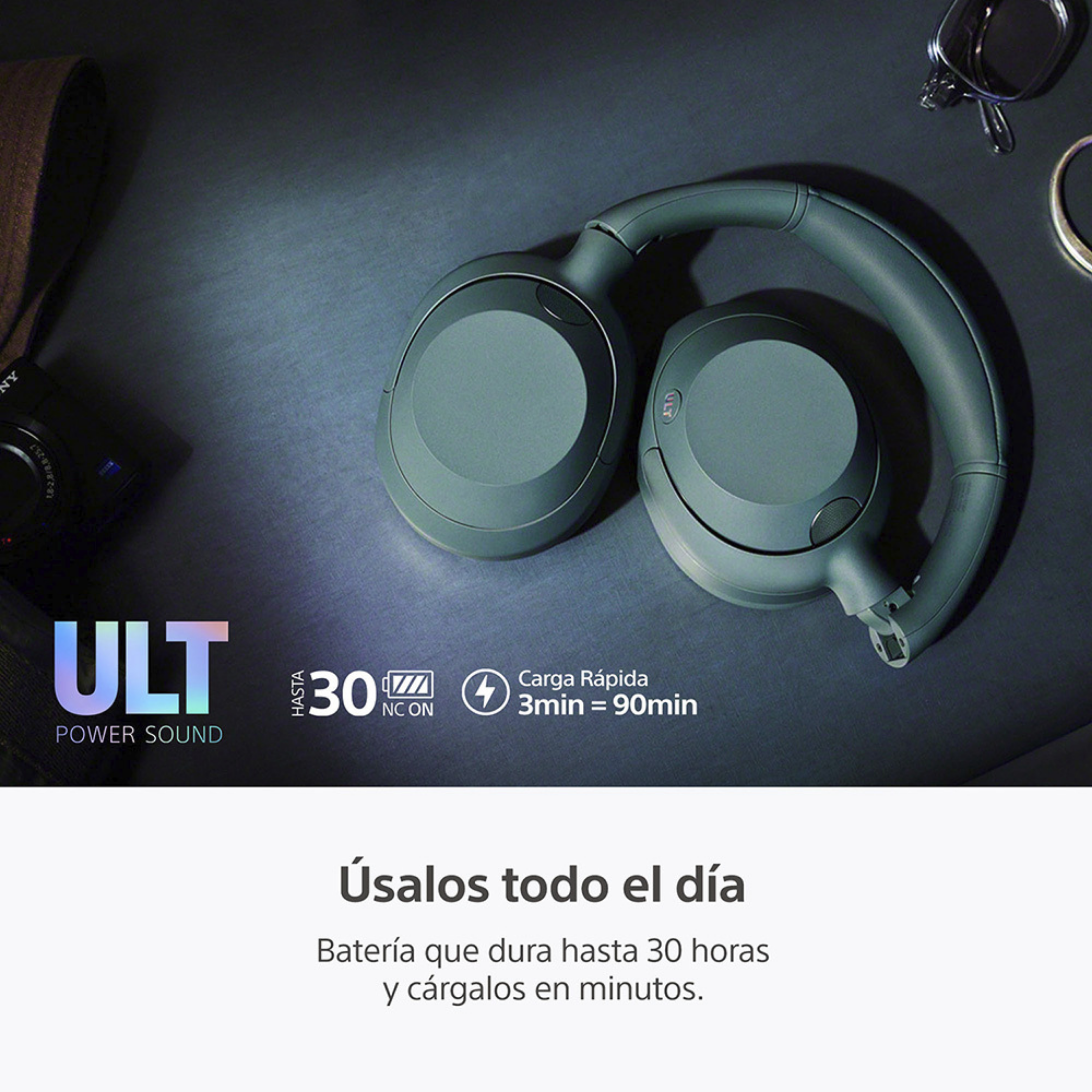 Los audífonos inalámbricos Sony ULT WEAR te ofrecen una experiencia sonora vibrante y envolvente gracias a su exclusivo botón ULT, que potencia los graves para sumergirte en un sonido profundo y contundente, mientras su avanzada tecnología True Noise Cancelling con sensores duales elimina el ruido ambiente para que disfrutes sin interrupciones; su diseño ergonómico con almohadillas de termo espuma asegura comodidad superior incluso en sesiones prolongadas, y su estructura plegable con estuche de transporte los convierte en el compañero ideal para viajes y trayectos, brindándote potencia, confort y practicidad en cada momento.
