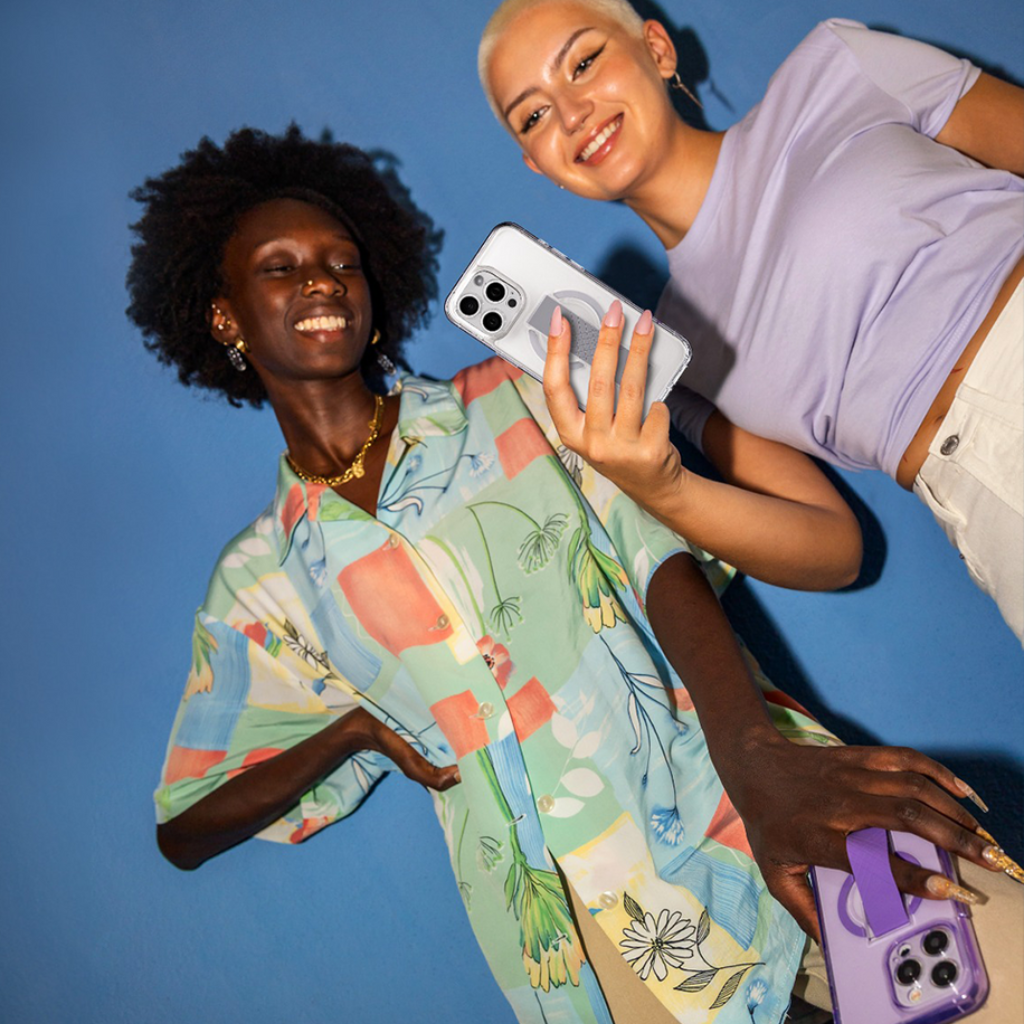 Estuche transparente incluye una práctica correa de agarre de silicona que mantiene su dispositivo seguro en la mano. su innovador agarre queda al ras para que pueda deslizarse fácilmente dentro y fuera de su bolsillo.