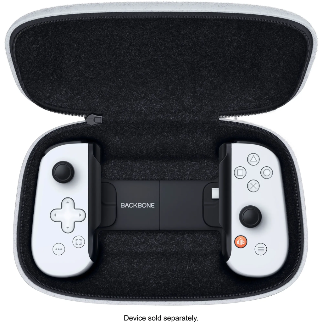 Protege tu Backbone One - PlayStation Edition con estilo, en casa o mientras te desplazas. Este estuche de transporte ligero y portátil almacena tu Backbone de forma segura y eficaz. Una carcasa exterior firme y un interior moldeado proporcionan protección contra golpes, vibraciones y caídas. La carcasa moldeada de fieltro gris tiene un tacto suave, el logotipo de Backbone grabado y un perfil delgado que le da un tacto elegante y de primera calidad. Una cremallera de perfil bajo y adherida garantiza un fácil acceso dondequiera que vayas sin interrumpir la apariencia prolija del estuche de transporte. Funciona con todos los mandos Backbone One y Backbone One - PlayStation Edition para iOS y Android y se adapta con el adaptador Backbone para iPhone 13/14 instalado.