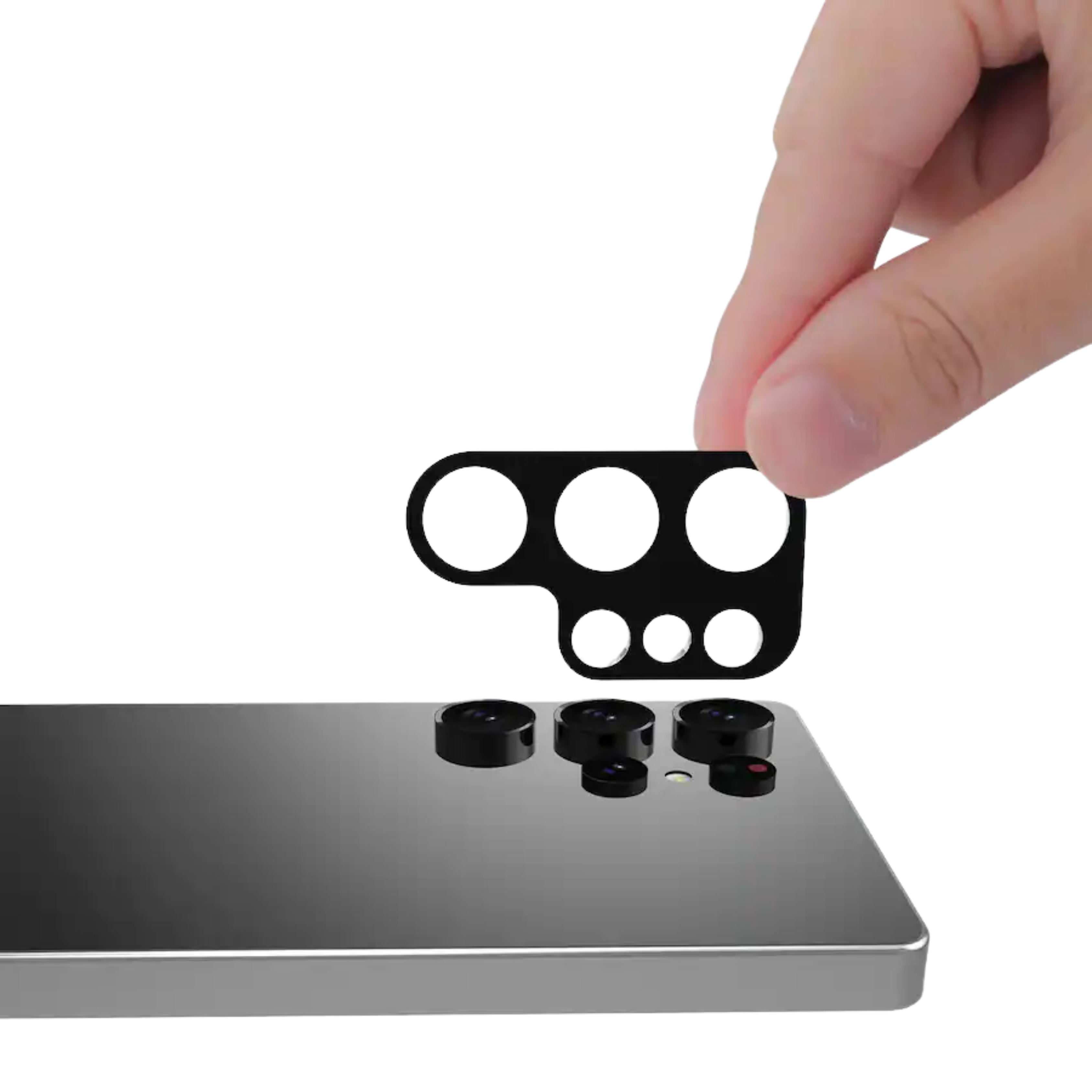 El protector de pantalla de vidrio templado para lente de cámara para Samsung Galaxy S25 Ultra tiene un grosor de 0.33 para ajustarse al ras con la lente del teléfono y ofrecer a tus clientes una funcionalidad completa sin obstrucciones para una claridad de alta definición. El protector de pantalla de vidrio templado para lente de cámara para Galaxy S25 Ultra es 5 veces más resistente que el vidrio estándar. Ofrece la mejor protección contra rayones, rozaduras y manchas para las vulnerables lentes de la cámara de su teléfono. El recubrimiento oleofóbico premium mantiene sus lentes cristalinas y libres de aceite, suciedad y huellas dactilares.