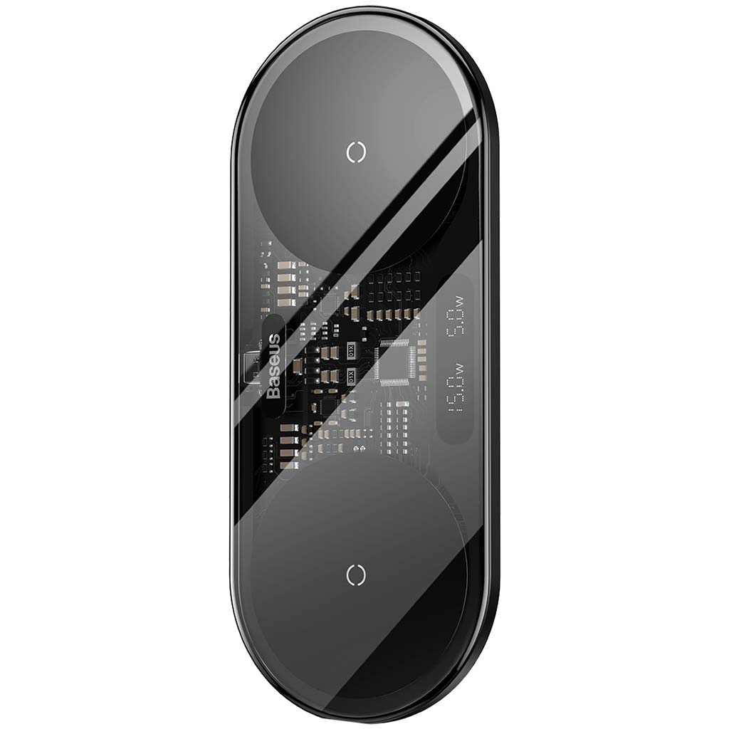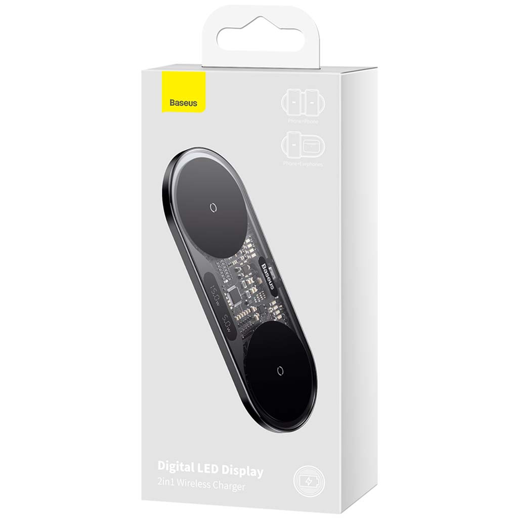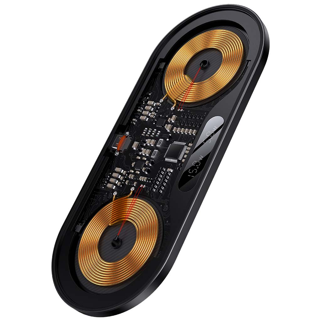 Baseus Digital LED Display Dual Qi Cargador inalámbrico con pantalla digital 20W. Un cargador inalámbrico de tamaño compacto te permitirá controlar el estado de la batería y asegurarte de que tu dispositivo electrónico esté siempre listo para funcionar. El dispositivo 2 en 1 está equipado con dos bobinas de inducción, por lo que su funcionalidad aumenta automáticamente.