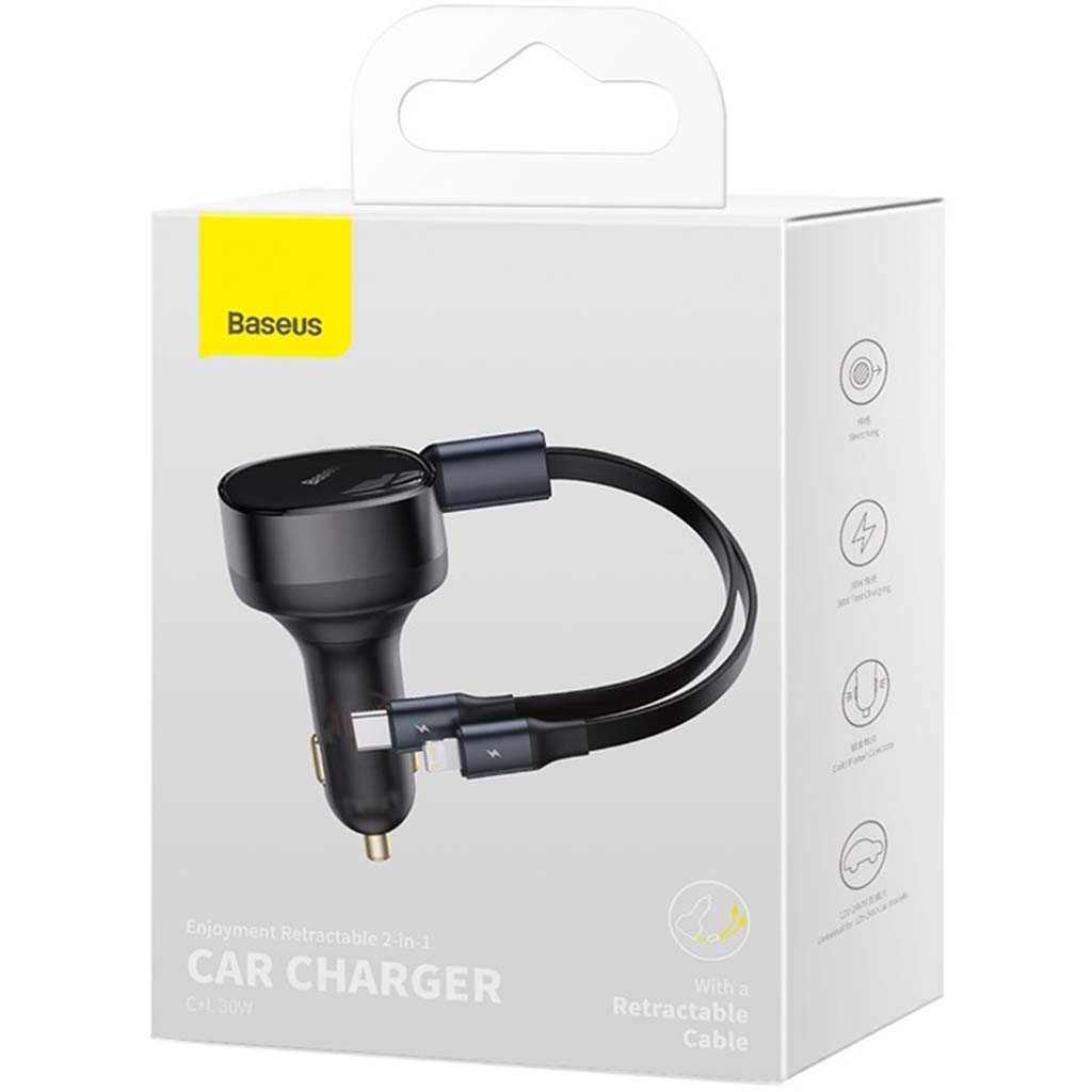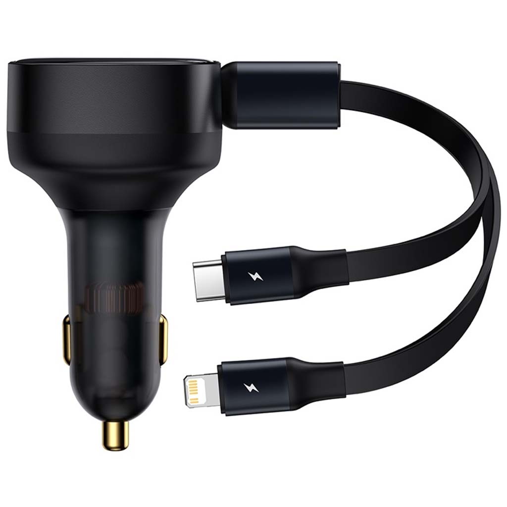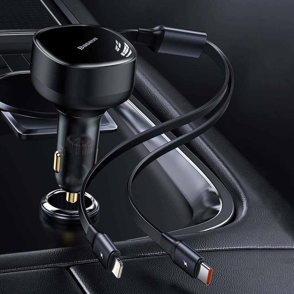 cargador de coche retráctil 2 en 1, carga simultáneamente 2 dispositivos con certificado multiprotocolo, de uso universal para vehículo de 12v-24v