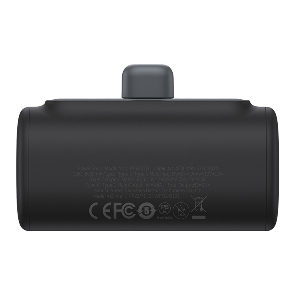 Cargador portátil Baseus Compact Mini. Este práctico power bank ofrece una solución energética eficiente para tu día a día, con su capacidad de 5000mAh que te permite recargar tu smartphone u otros dispositivos móviles cuando más lo necesites, ya sea durante viajes, excursiones o en tu rutina diaria.