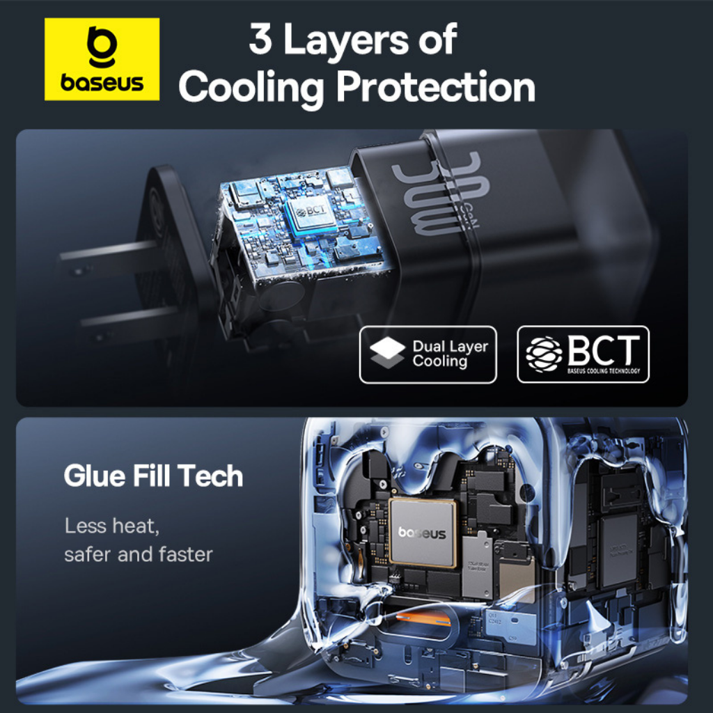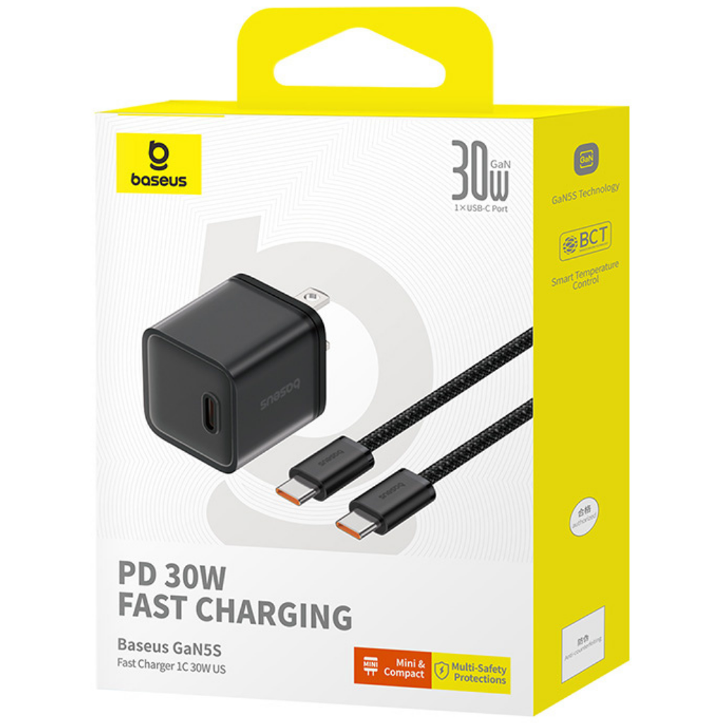Cargador rápido Baseus GaN5S 1C 20W con la tecnología GaN (nitruro de galio), este cargador puede proporcionar mayor potencia en un tamaño más compacto que los cargadores convencionales.