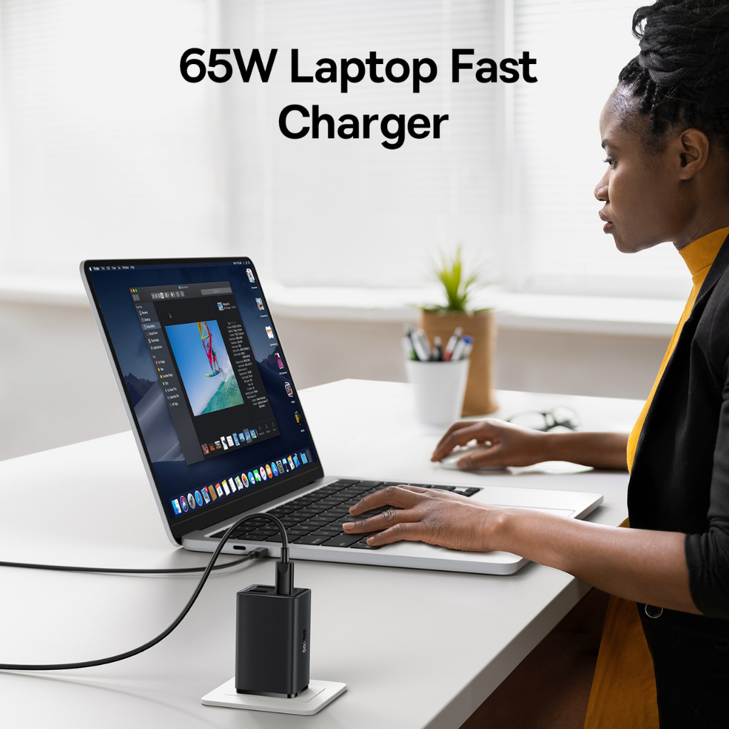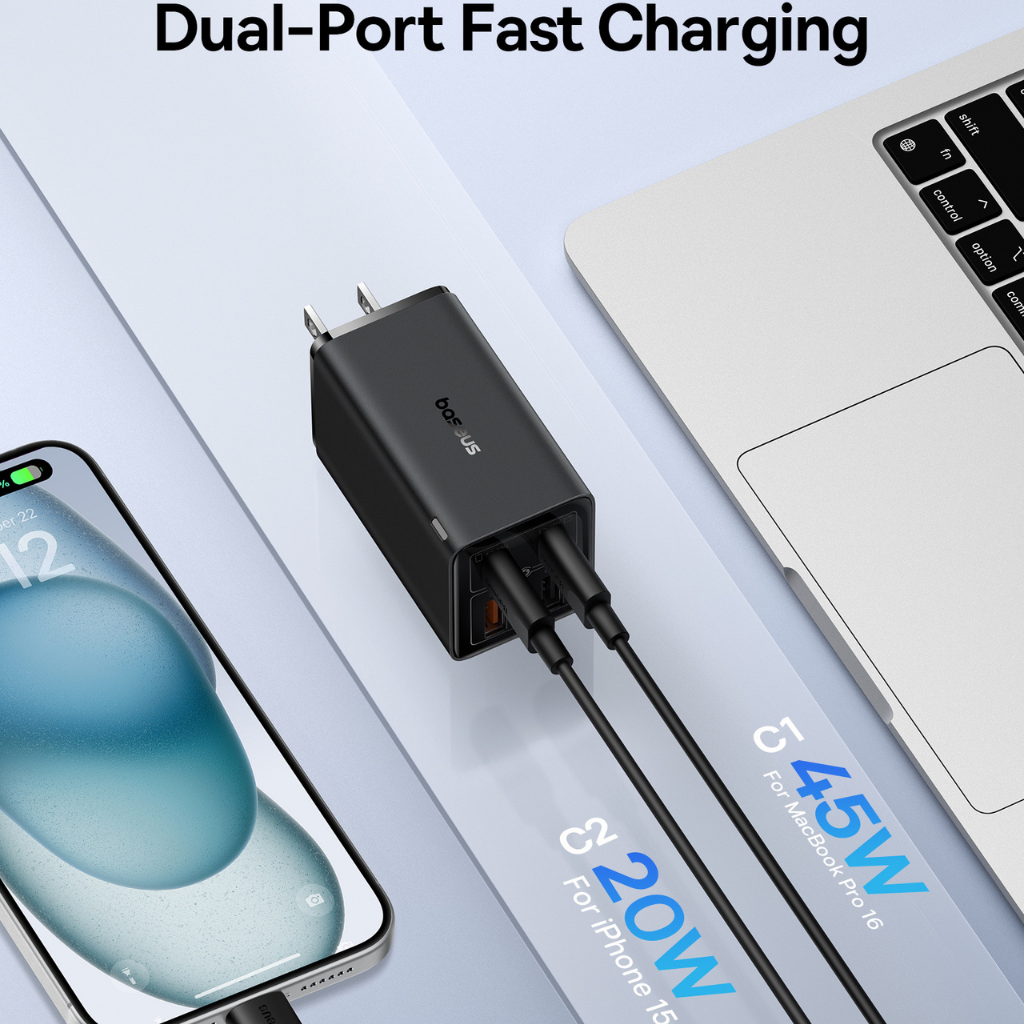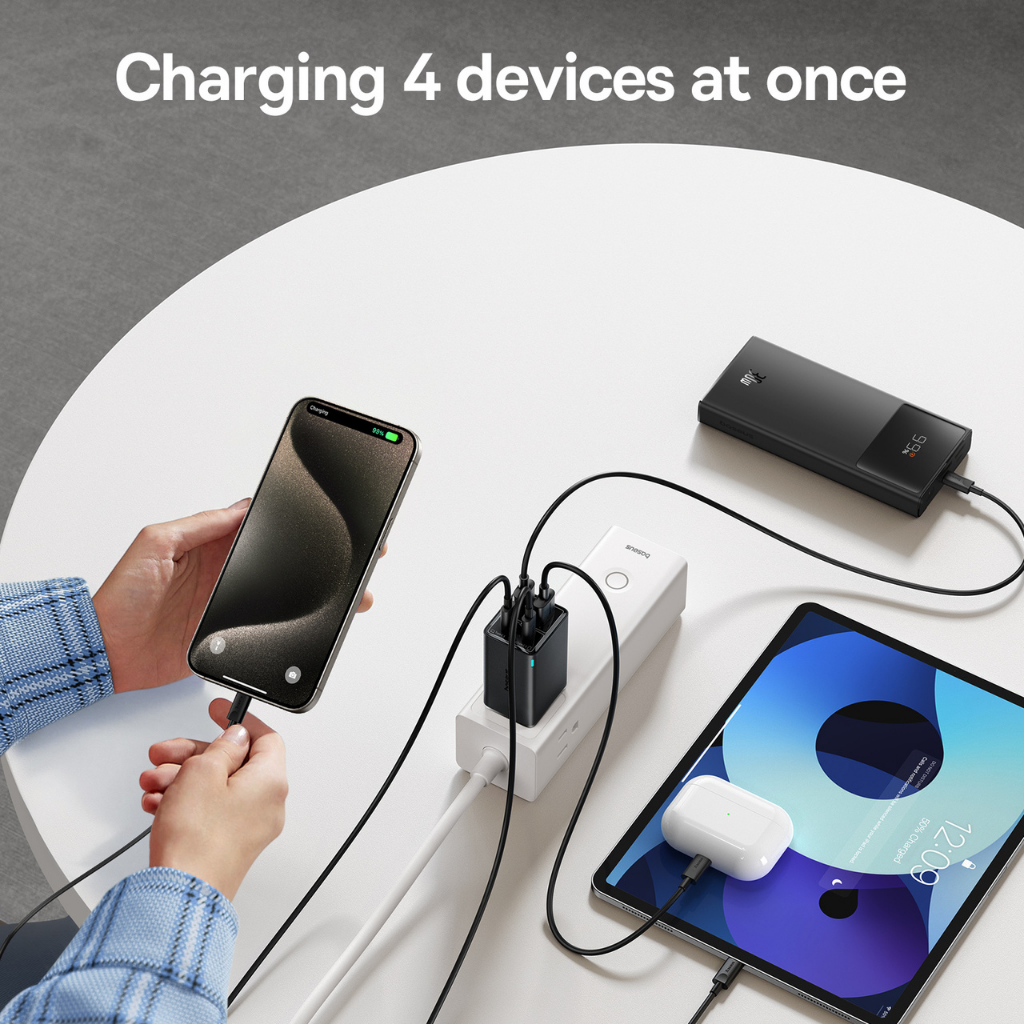 Cargador rápido Baseus GaN5S 1C 30W con la tecnología GaN (nitruro de galio), este cargador puede proporcionar mayor potencia en un tamaño más compacto que los cargadores convencionales.