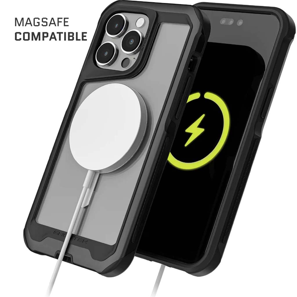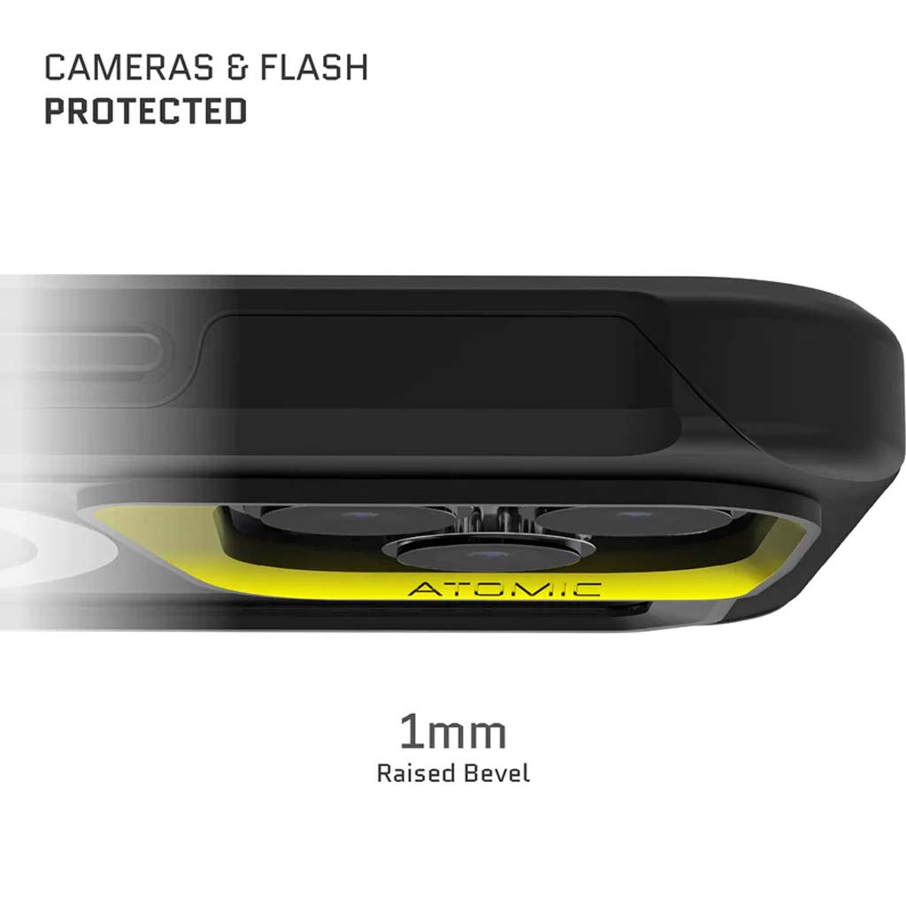 Perímetro elevado de la lente de la cámara y borde levantado para proteger la pantalla, cuenta con esquinas amortiguadoras R7x estándar de grado militar probado que soporta caídas desde 12 pies. Admite carga inalámbrica. Compatible con desbloqueo de identificación facial