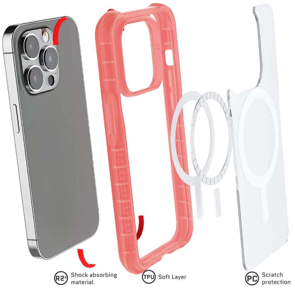 La serie iPhone 14 está disponible y es hora de presumirla, con un aspecto elegante y un montón de funciones. Agarra nuestro nuevo estuche transparente MagSafe para darle a tu teléfono el estilo y la protección que se merece. Nuestro diseño delgado y liviano hace que su teléfono sea fácil de llevar en el bolsillo y no agrega volumen adicional. El diseño de TPU tiene una forma precisa y funciona con todos los últimos avances tecnológicos del iPhone 14, como Face ID, el MagSafe magnético y, por supuesto, la carga inalámbrica. Esta cubierta transparente incluye bordes elevados para proteger las cámaras delantera y trasera, así como la pantalla OLED, además de brindar protección contra caídas de grado militar. El dorso cristalino es resistente a los rayones y está garantizado que no amarilleará durante 18 meses.