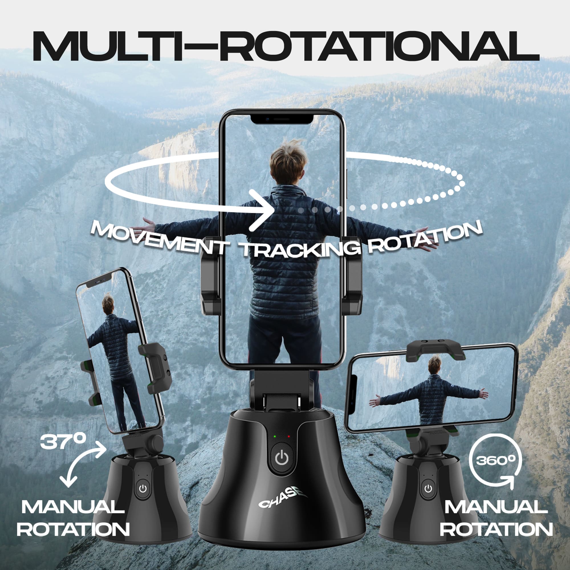 El soporte para teléfono celular iJoy Chase Robot tiene un seguimiento intuitivo de cara y objetos, la herramienta perfecta para vlogs, tiktok, videos de desembalaje y mucho más. Úsalo en lugar de un trípode selfie stick para fotos de grupo, o un trípode de teléfono celular para grabar vídeos