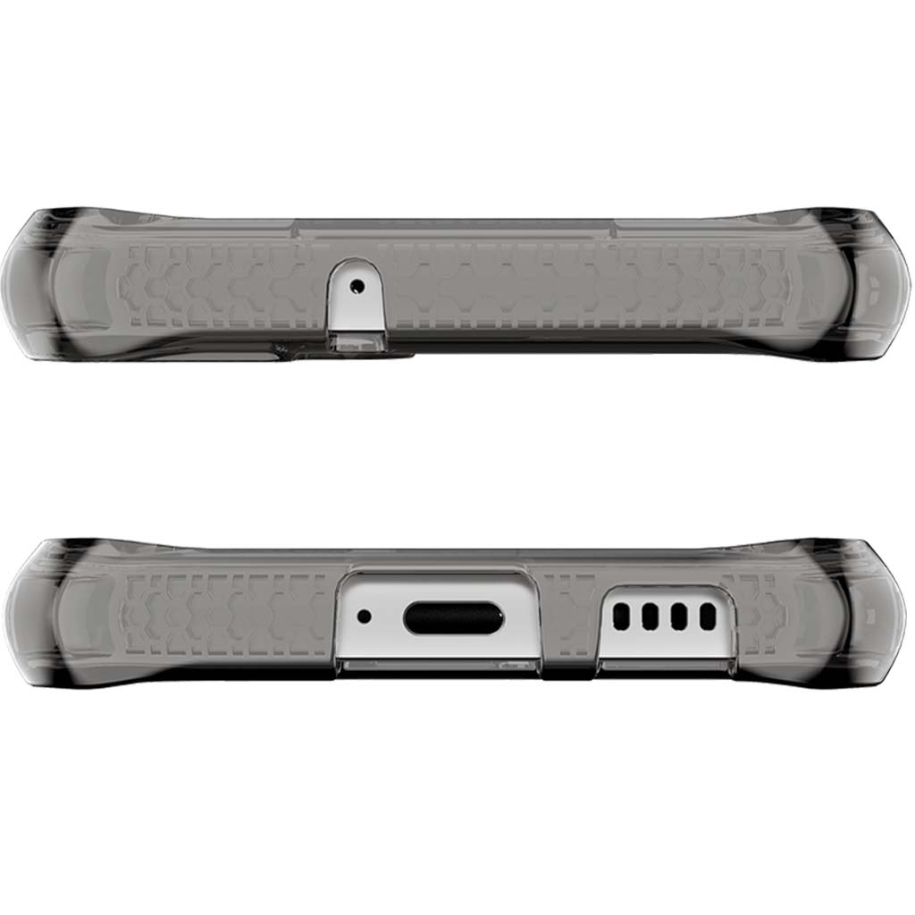 Borde de dos tonos con reverso esmerilado suave: diseñado para brindar lo último en protección que no deja marcas.