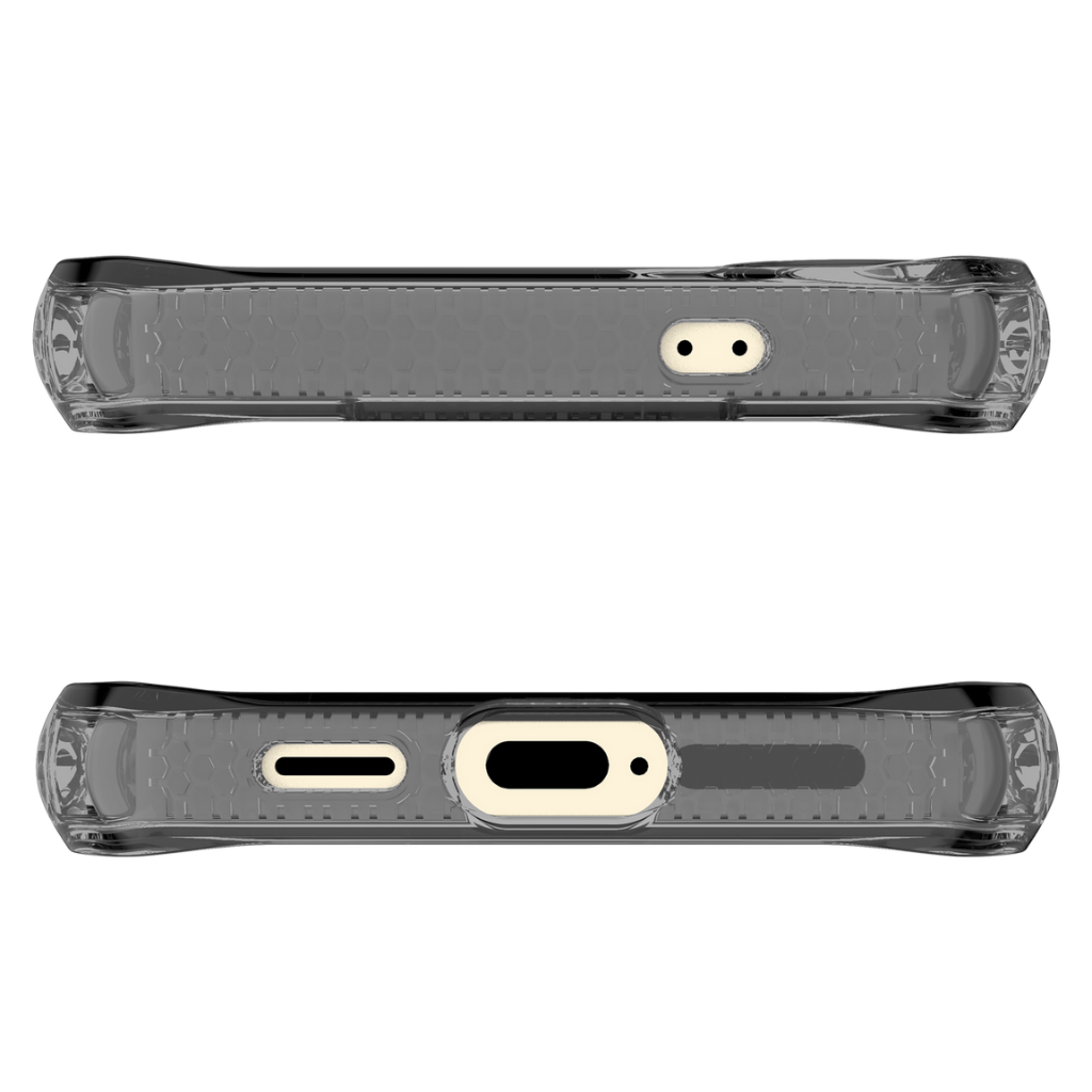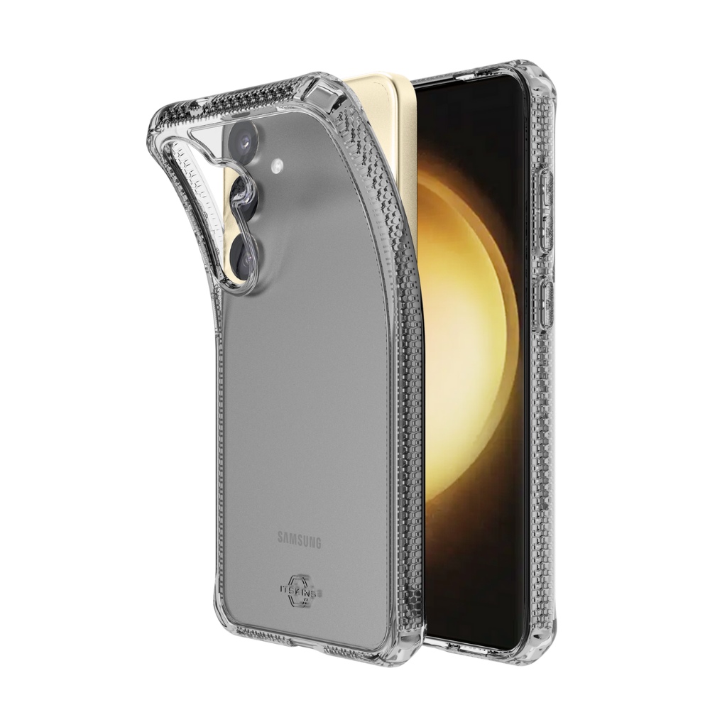 SPECTRUM CLEAR ha sido certificado por el Global Recycled Standard por utilizar materiales 100% reciclables y producido con un mono material para un fácil reciclaje. Ofrece protección premium contra caídas y defensa antimicrobiana antiamarilleo.