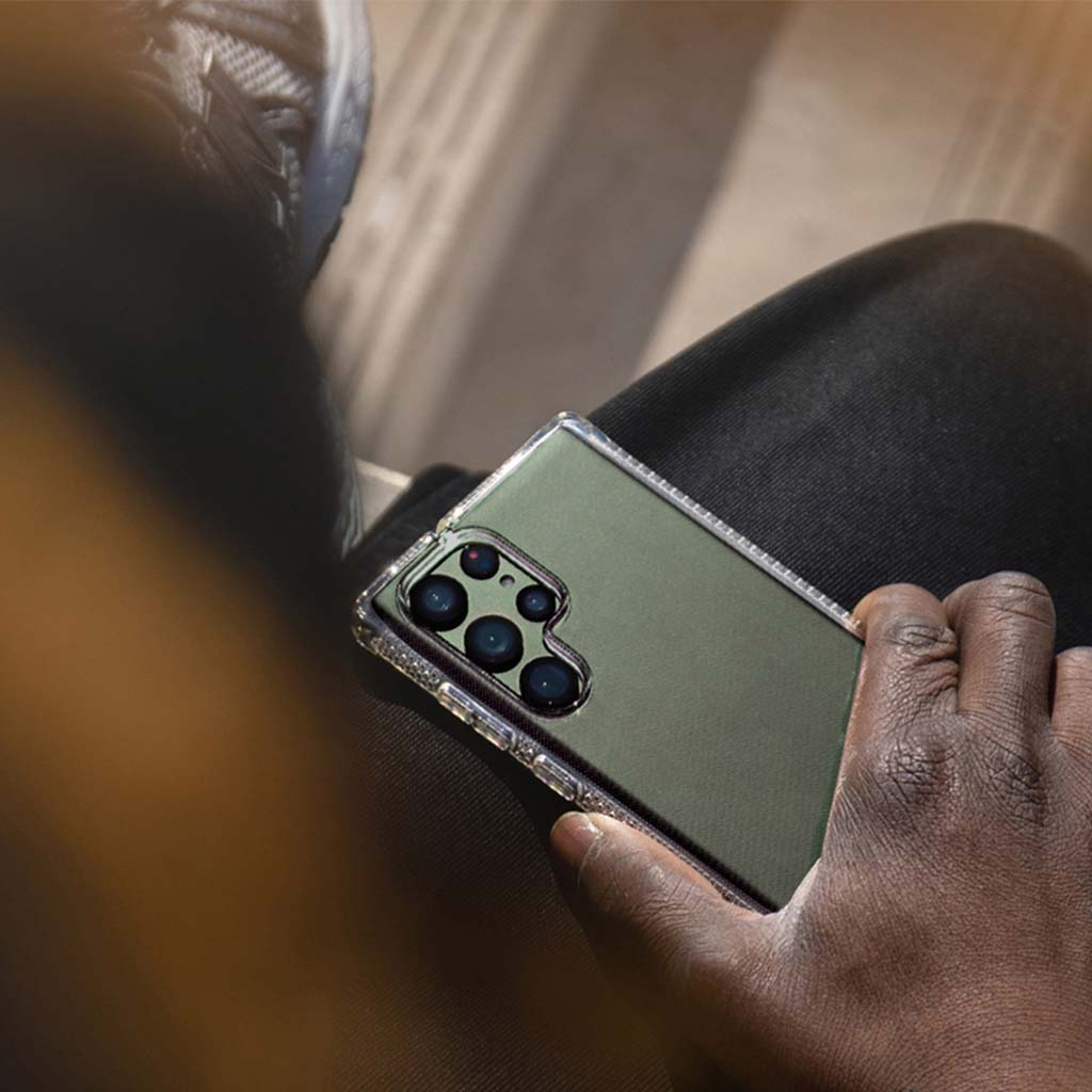 Spectrum ha sido certificado por Global Recycled Standard por utilizar materiales 100 % reciclados y producidos con métodos sostenibles siempre que sea posible. Con una versión ultradelgada de nuestra exclusiva tecnología de absorción de impactos Hexotek, este estuche ecológico brinda protección contra caídas y defensa antimicrobiana en un estuche que apenas existe.