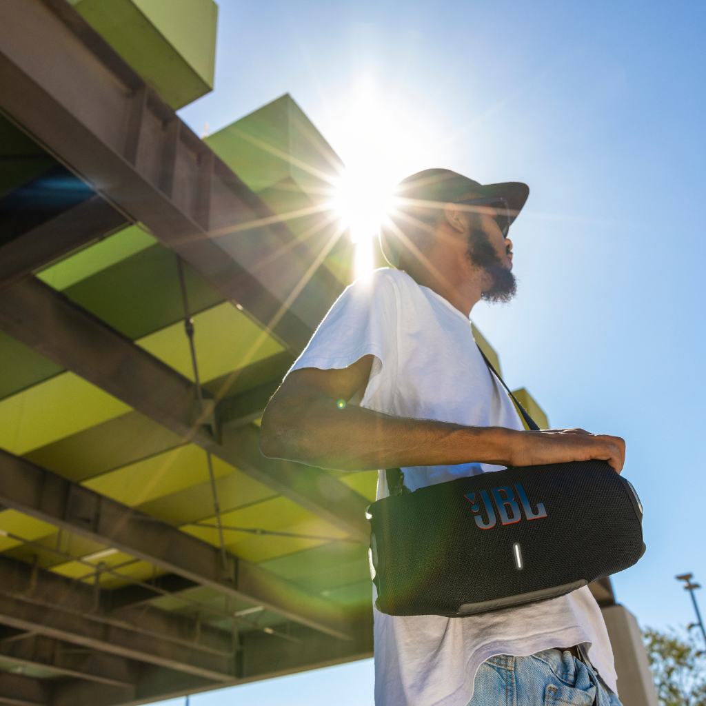 ¡Es hora de vivir con volumen! El altavoz portátil JBL Xtreme 4 resistente al agua ofrece un sonido JBL Pro de última generación con una dinámica increíble, incluso a máximo volumen, gracias a sus dos potentes woofers y dos altavoces de agudos. Los radiadores pasivos JBL de doble bombeo te ofrecen unos graves más profundos. ¿Quieres llevar tu música al exterior? La práctica correa para el hombro lo hace fácil, mientras que los resistentes protectores de goma y la clasificación IP67, resistencia al agua y al polvo hacen que un chaparrón repentino o un chapuzón en el lago no detengan la diversión. Cuando llegue el momento de crear una experiencia de audio aún mayor, combina dos Xtreme 4 para obtener sonido estéreo. O para tu próxima fiesta, utiliza Auracast para conectar el Xtreme 4 con cualquier altavoz portátil JBL compatible, para que tus amigos que estén descansando junto a la piscina se relajen con la misma lista de reproducción que los que chatean en interiores. 24 horas de reproducción y una cómoda batería externa para tu dispositivo significan que no lo tendrás que recargar hasta la mañana