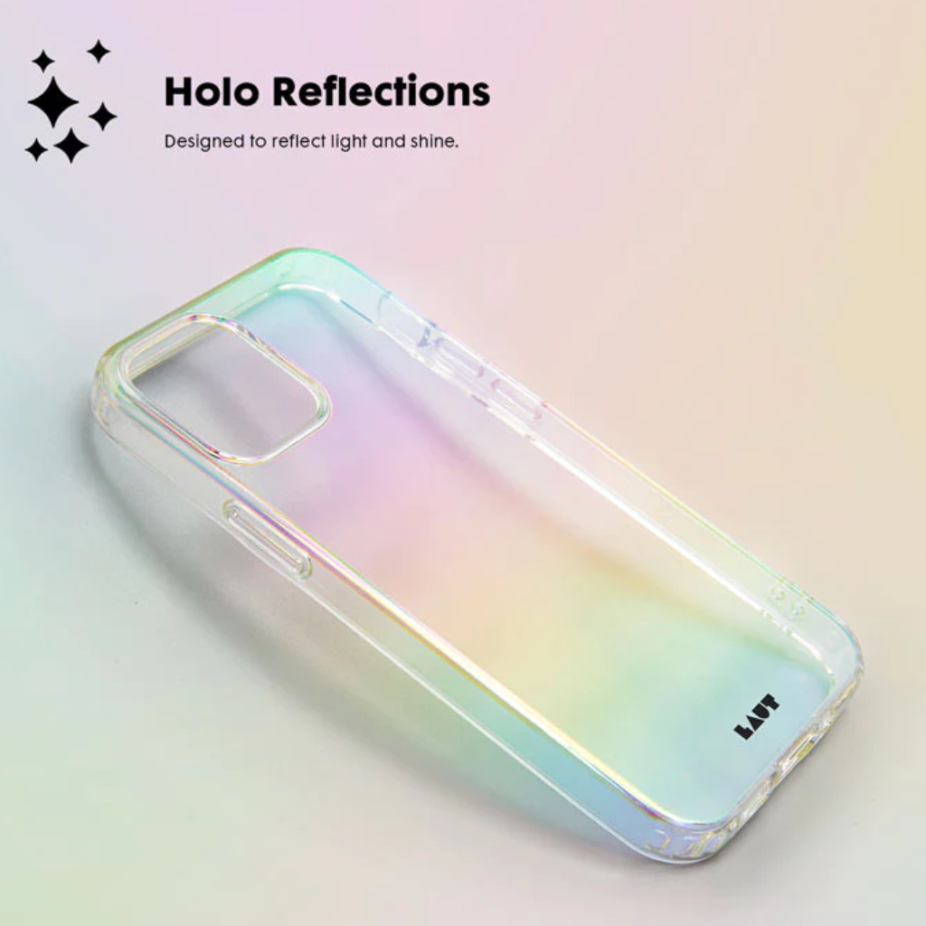 Brillo iridiscente. Sostén una parte del arcoíris en tus manos con el acabado iridiscente de la funda para iPhone HOLO.