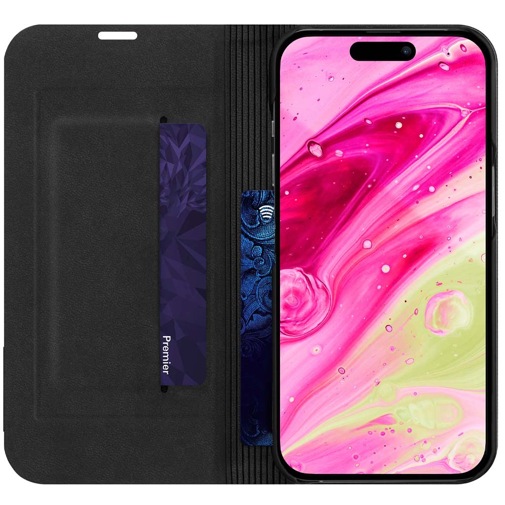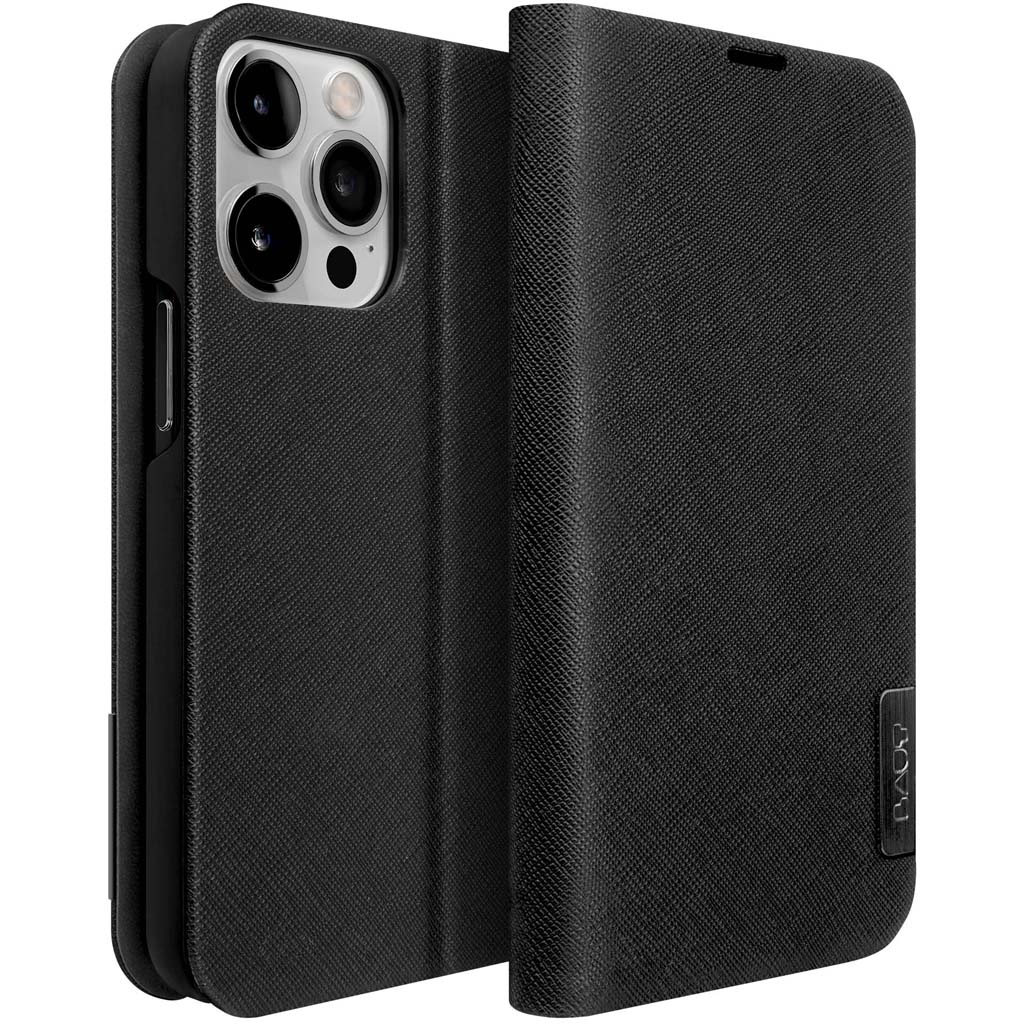 Funda tipo folio de cuero vegano para tu iPhone.Confeccionado con cuero vegano Saffiano, este diseño representa la combinación perfecta de sutileza y elegancia. Con una protección delgada de 360º y dos ranuras para tarjetas internas, puede proteger su teléfono y llevar sus elementos esenciales con usted. Experimente la moda funcional en su máxima expresión con PRESTIGE FOLIO.