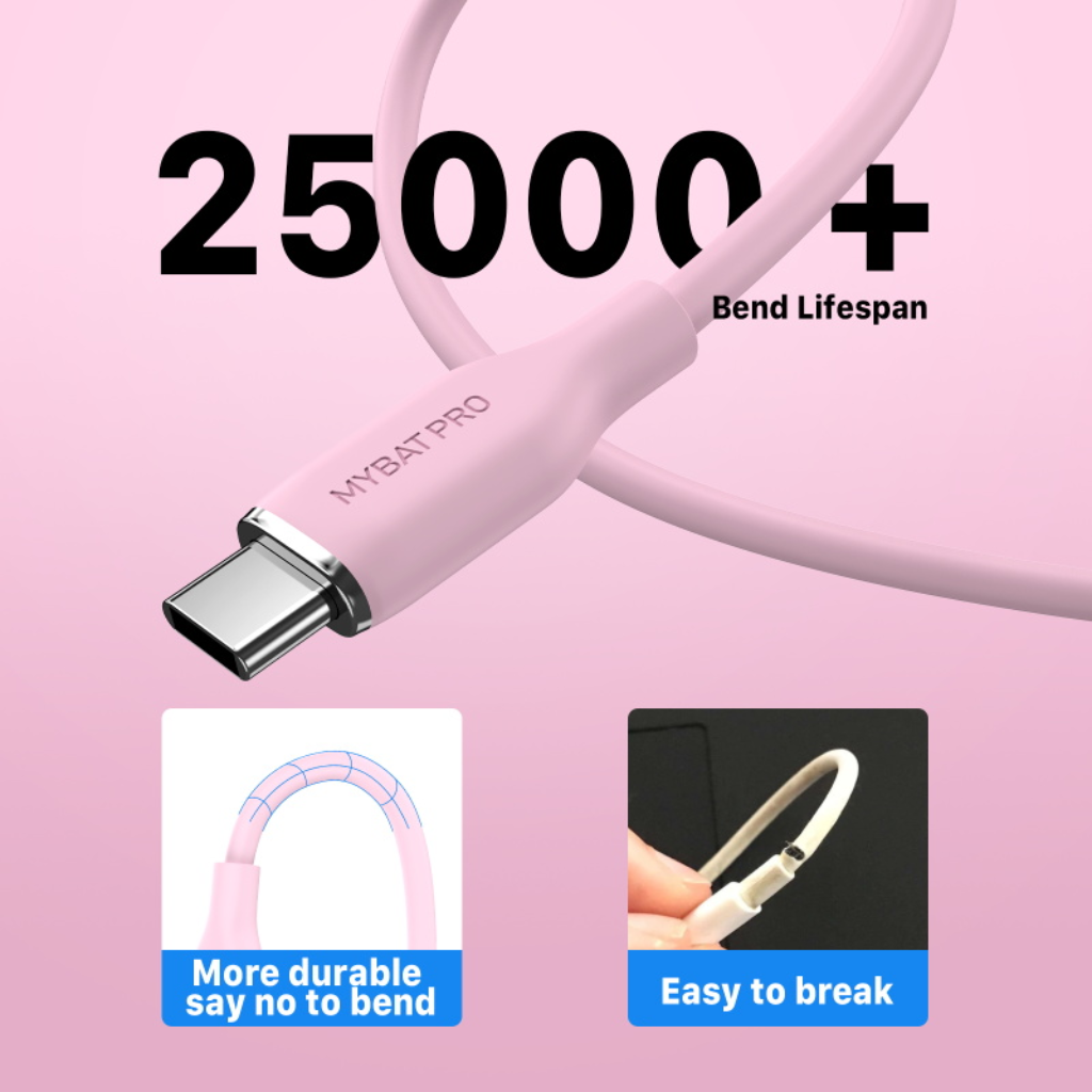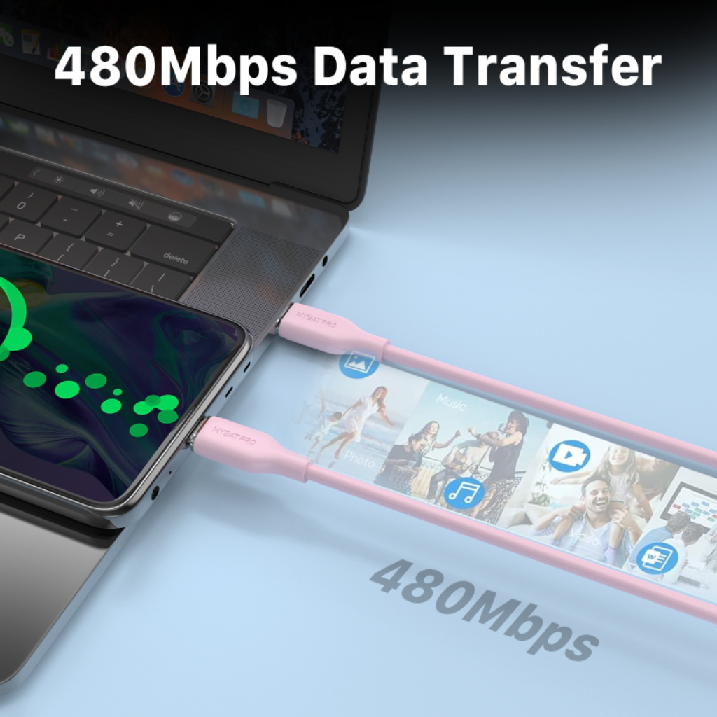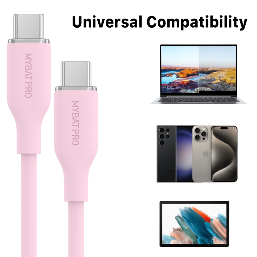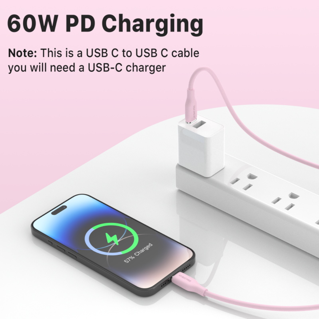 El cable de silicona líquida USB-C a USB-C proporciona las velocidades de carga y transferencia de datos más rápidas para los dispositivos de sus clientes! Pueden cargarse rápidamente a velocidades de hasta 3 A y transferir archivos grandes a velocidades de 480 Mbps cuando se conectan a una computadora para que pueda transferir archivos más grandes, como fotos y videos, en segundos. Fabricado con materiales suaves y agradables para la piel, el cable de silicona líquida USB-C a USB-C cuenta con una increíble vida útil que supera al cable de carga promedio. Sus clientes obtendrán la máxima libertad y movilidad mientras cargan con la longitud perfecta de 3,3 pies / 1 m que llega fácilmente desde un tomacorriente de pared a un sofá o cama y se extiende fácilmente desde una consola central hasta un pasajero.