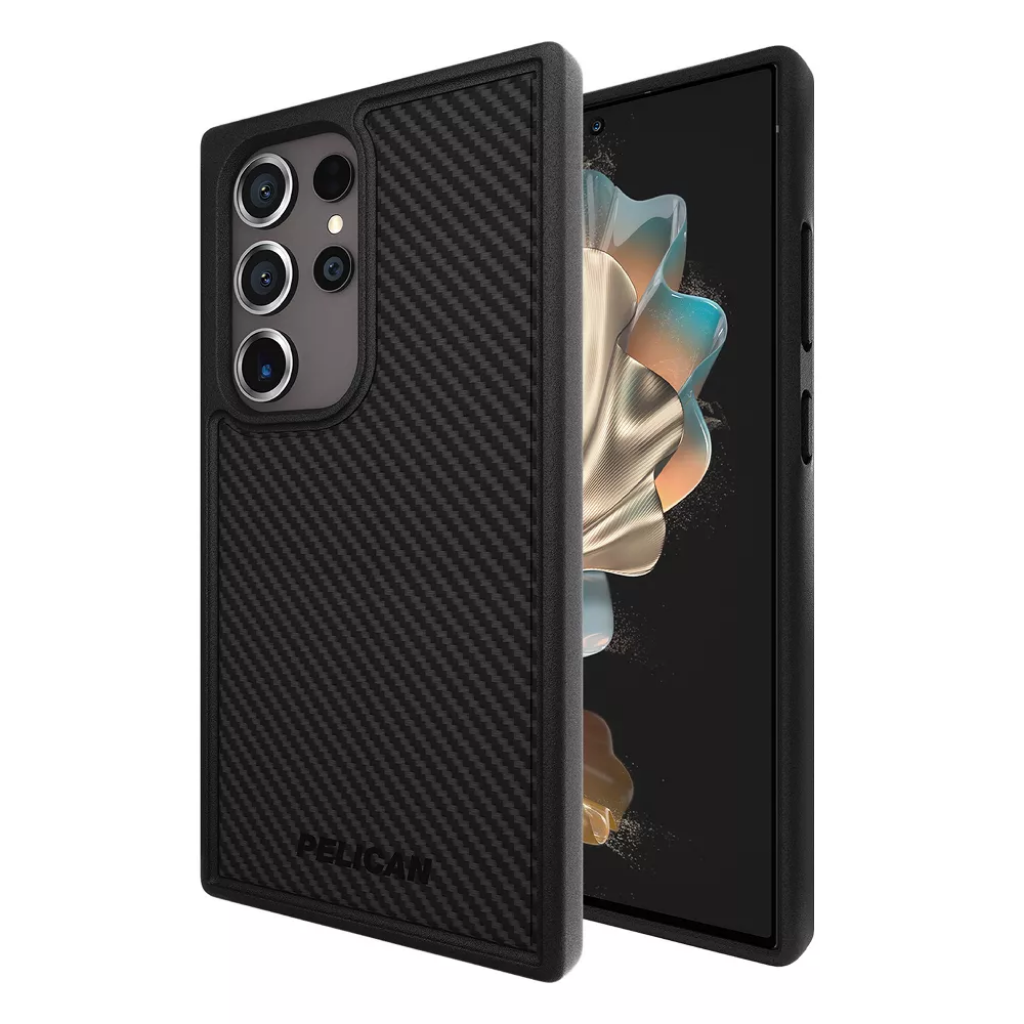 La funda Pelican Protector para series Galaxy S24 está diseñada con protección contra caídas desde 16 pies. La construcción duradera cuenta con una carcasa protectora de polímero de fibra de carbono y bordes interiores que dispersan los golpes y protegen su teléfono en sus aventuras más difíciles.