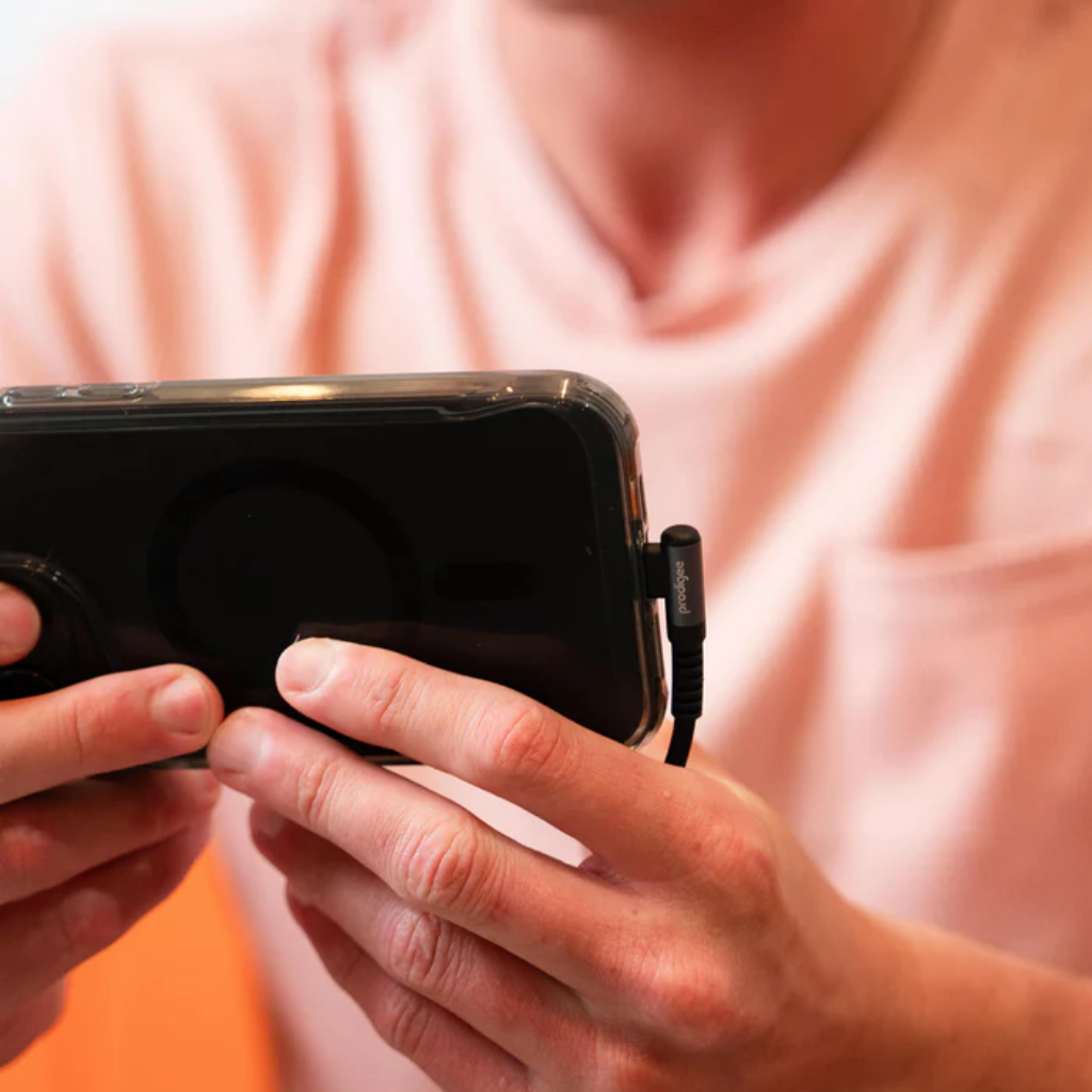Diseño avanzado en ángulo recto Con un diseño ergonómico en forma de “L” en ángulo recto de 90°, nuestro cable evita el desgaste, la tensión y los problemas de conexión. Es perfecto para jugar, usar aplicaciones, mirar videos y leer mientras se carga, incluso en espacios reducidos.