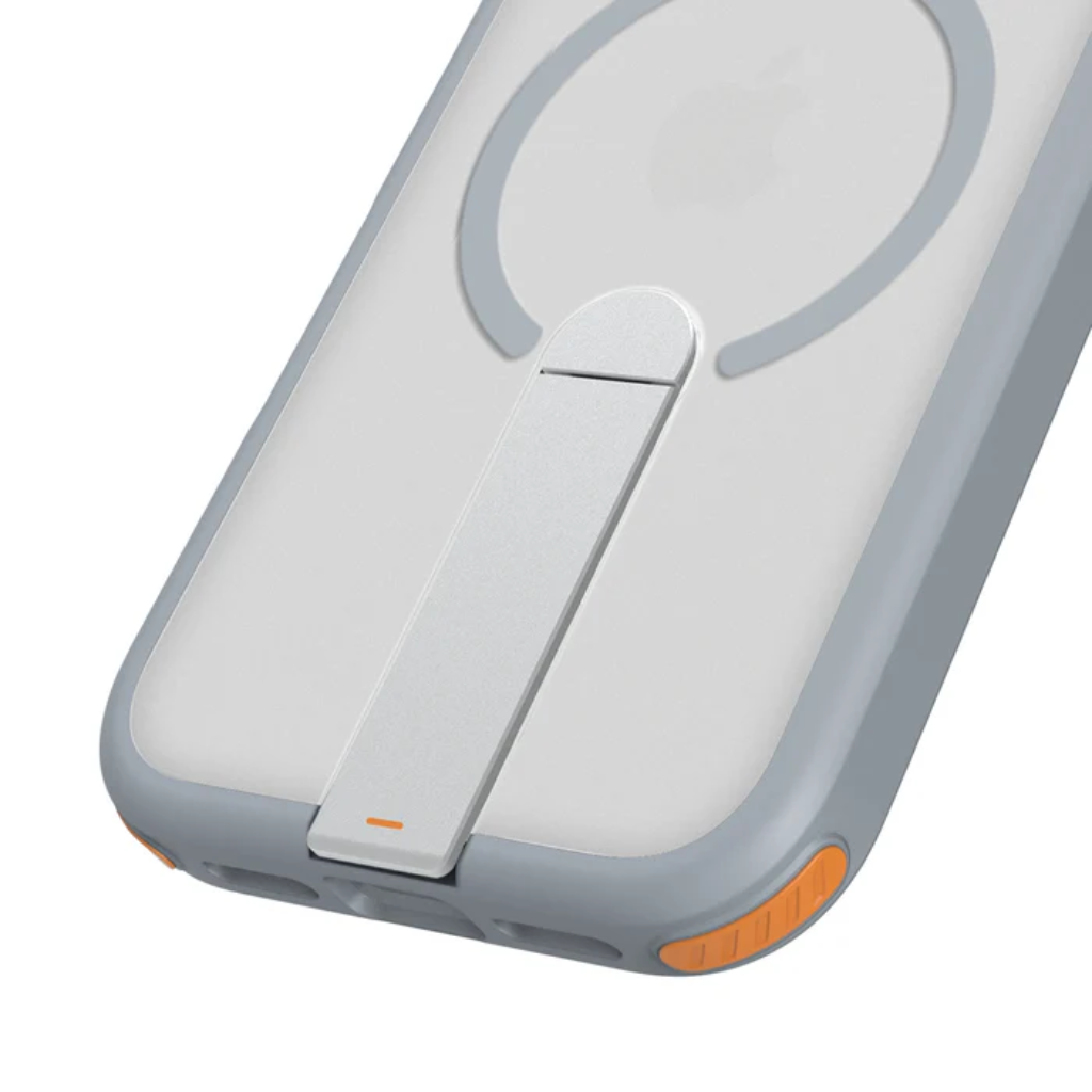 Súper delgada. Ultraduradera. Esta funda tiene un aspecto deportivo con un toque de color. Su doble material proporciona flexibilidad y absorción de impactos para una protección total. Cuenta con función de soporte para un mejor ángulo de visión. *Con la experiencia adicional de poder cargar de forma inalámbrica su teléfono mediante la tecnología MagSafe®.