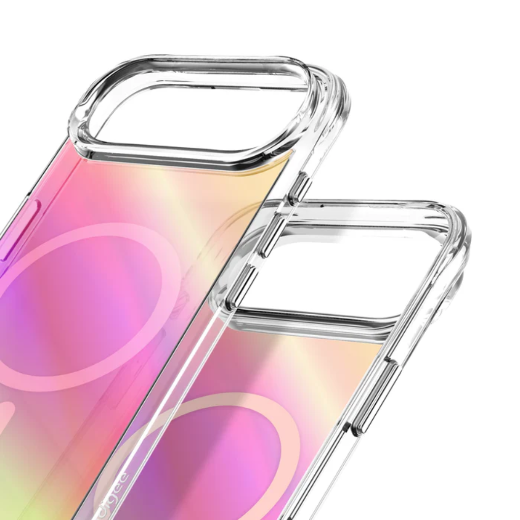 ¡Glow es la mejor funda iridiscente! Superdelgada y ultrarresistente, esta funda resiste golpes y caídas. Su diseño minimalista te permite resaltar la belleza original de tu teléfono. La parte trasera es translúcida e iridiscente; al incidir la luz desde diferentes ángulos, mostrará diferentes colores. Botones metálicos fáciles de presionar y sensibles que ofrecen la mejor experiencia de usuario. *Con la experiencia adicional de poder cargar de forma inalámbrica su teléfono mediante la tecnología MagSafe®.