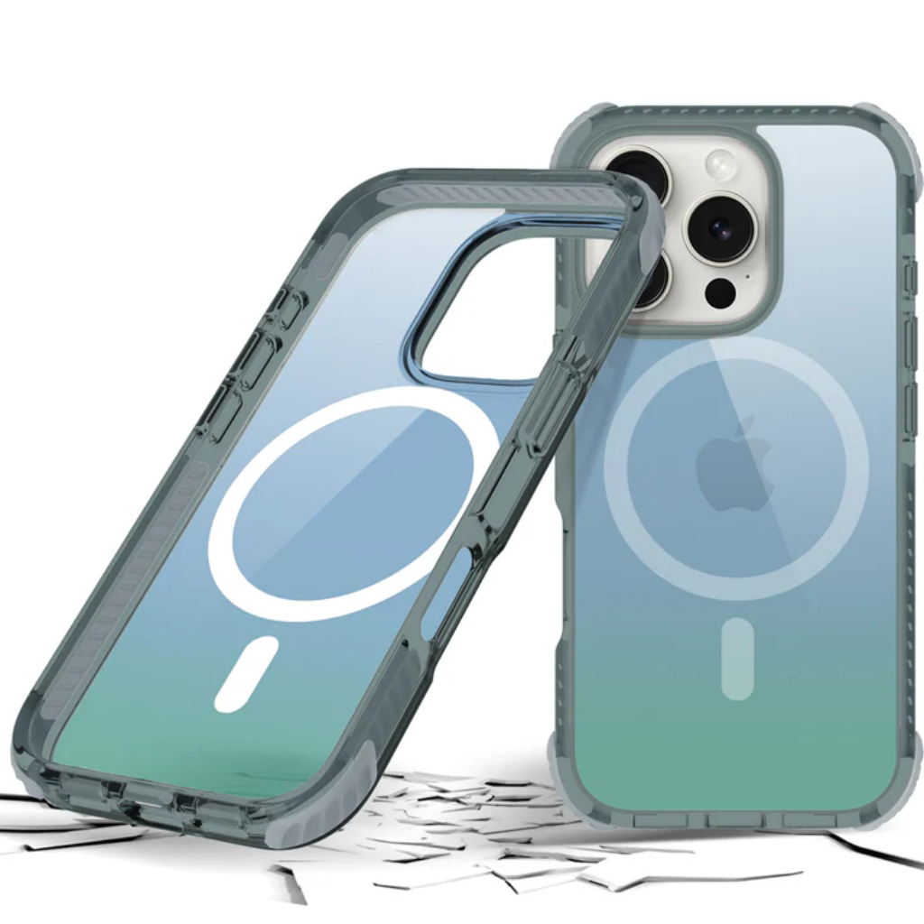 ¡Glow es la mejor funda! Súper delgada y ultraduradera, esta funda está lista para soportar golpes y caídas difíciles. Un diseño minimalista te permite resaltar la belleza original de tu teléfono. La parte trasera es translúcida e iridiscente, cuando la luz incide en diferentes ángulos, mostrará diferentes colores. Botones metálicos sensibles que se presionan fácilmente y brindan la mejor experiencia de usuario. *Con la experiencia adicional de poder cargar de forma inalámbrica su teléfono mediante la tecnología MagSafe®.