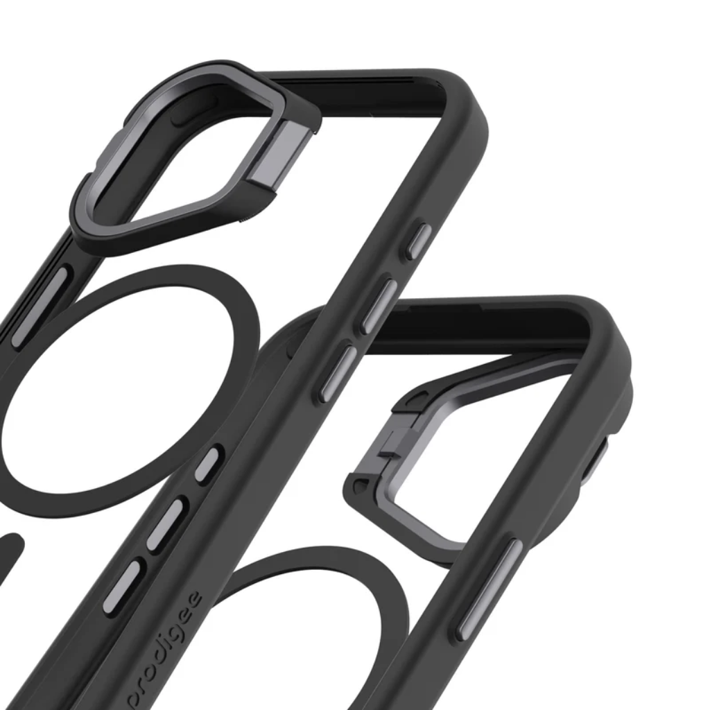 Diseño innovador, elegante, protector, divertido y funcional. El material doble con diseño suave al tacto brinda una protección superior y resguarda su nuevo iPhone de golpes y caídas. La función de soporte adicional ofrece al usuario un ángulo de visión óptimo. *Esta funda cuenta con imanes integrados diseñados para alinearse perfectamente con tu nuevo iPhone para un agarre firme y una carga inalámbrica. Compatible con todos los accesorios de carga Prodigee con función "Mag".