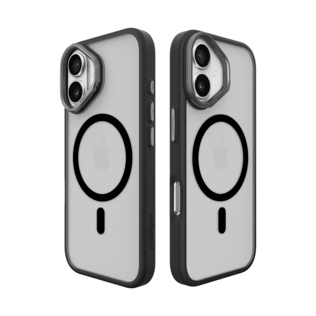 Diseño innovador. Elegante. Protector. ¡Divertido y funcional! Su material dual y diseño suave al tacto proporciona una protección superior y resguarda tu nuevo iPhone de golpes y caídas. La función de soporte ofrece un ángulo de visión óptimo. *Esta funda cuenta con imanes integrados diseñados para alinearse perfectamente con tu nuevo iPhone, ofreciendo un agarre firme y carga inalámbrica. Compatible con todos los accesorios de carga Prodigee con función "Mag".