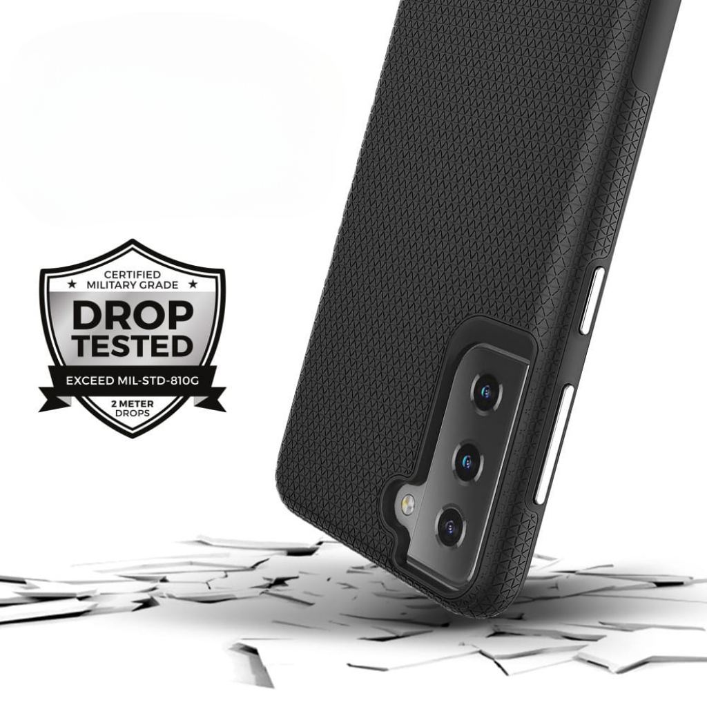 Robustamente fuerte. Diseño elegante. La funda de doble material con parte trasera transparente y parachoques que absorbe los golpes brinda protección total y al mismo tiempo resalta la belleza original de su nuevo telefono. Los bordes elevados ayudan a proteger la pantalla de su teléfono y las lentes de la cámara contra rayones.