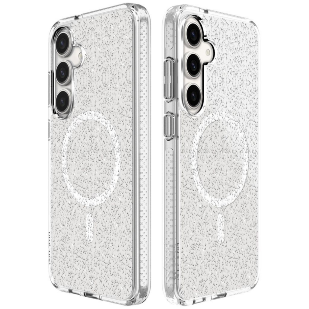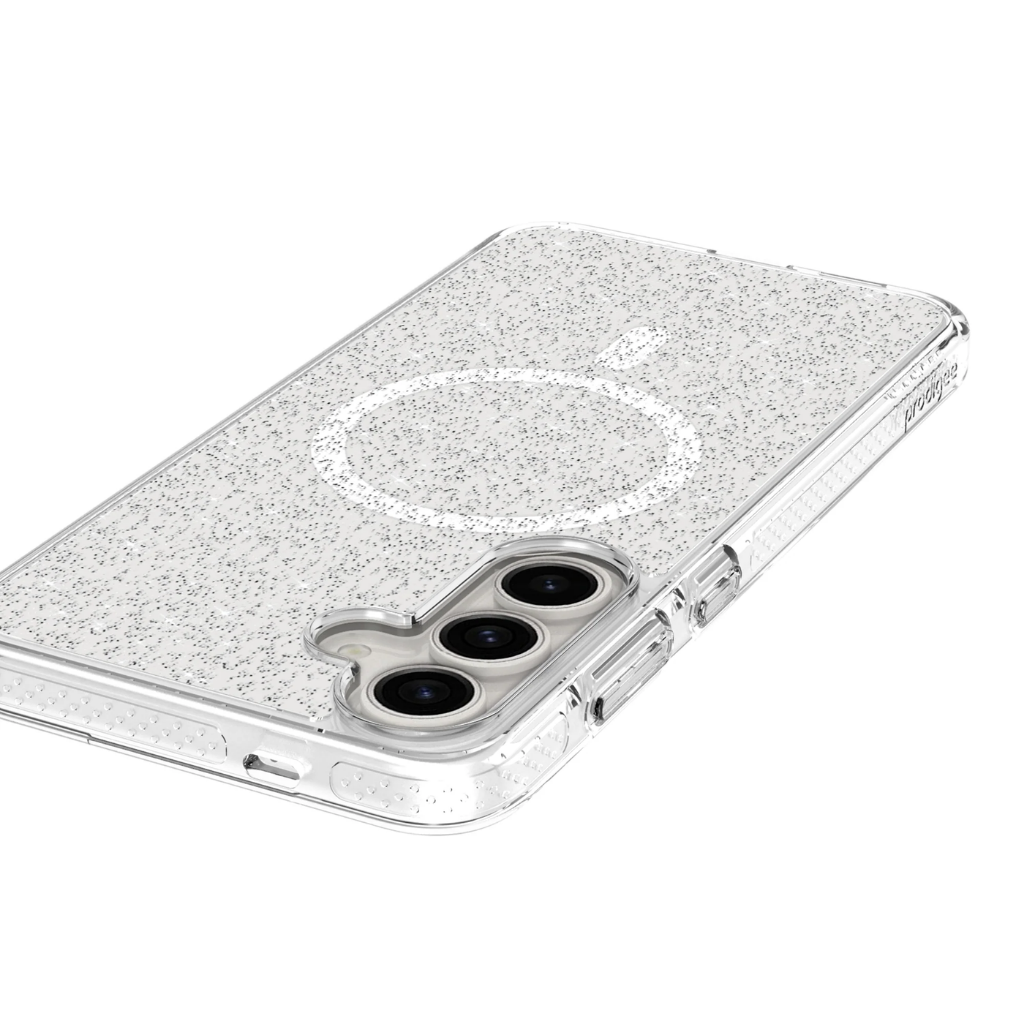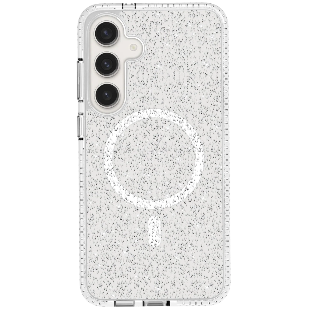 Súper delgada. Súper protectora. Súper estrella. Máxima protección sin agregar volumen innecesario. Esta funda está lista para soportar los golpes y caídas más fuertes. ¡Con un toque de brillo para hacerte sonreír y brillar! Con la experiencia adicional de poder cargar tu teléfono de forma inalámbrica con la tecnología MagSafe®.