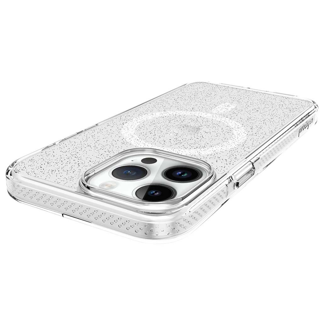 Súper delgado, súper protector y súper agradable. Este estuche está listo para soportar los golpes y caídas más difíciles. Proteja su teléfono con esta solución de protección de una sola pieza sin agregar volumen innecesario. Mantenga el aspecto natural de su teléfono con un toque de destellos para que brille y sonría.
