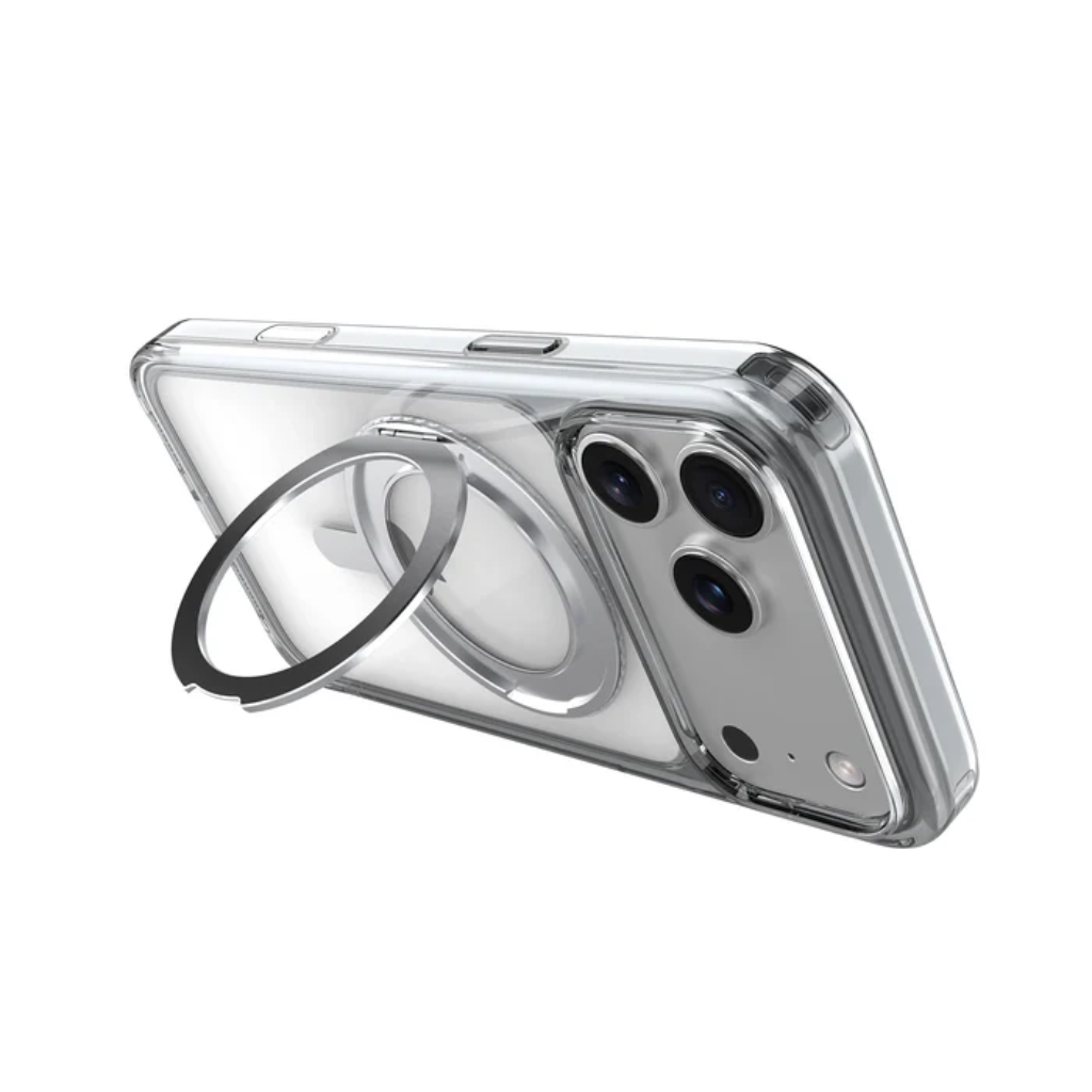 Delgado. Innovador. Su material dual proporciona flexibilidad y absorción de impactos. Su soporte giratorio de 360 ​​grados permite ajustarlo al ángulo que desees. Diseño minimalista, pero resistente a golpes y caídas. *Con la experiencia adicional de poder cargar de forma inalámbrica su teléfono mediante la tecnología MagSafe®.
