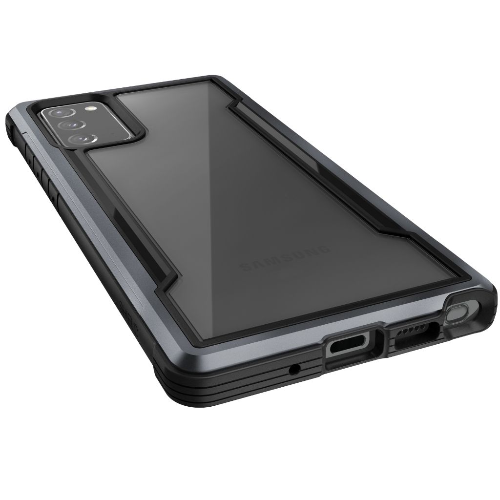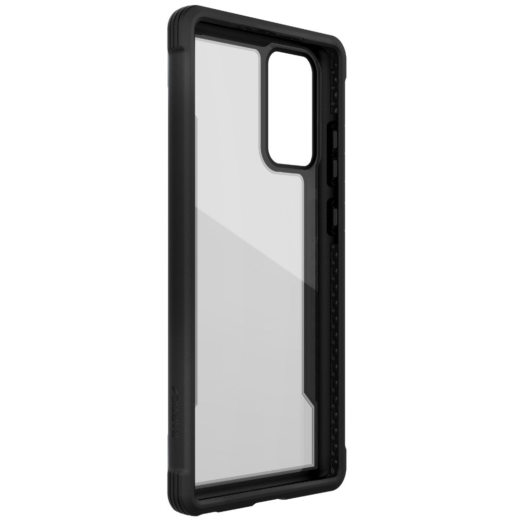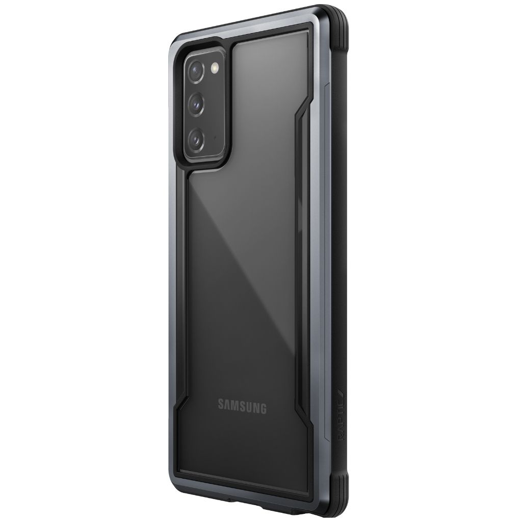 Con una combinación de policarbonato duro, caucho blando y aluminio anodizado, nuestra funda Raptic Shield es la mejor protección que podría desear para su Galaxy Note 20. Utilizamos metal mecanizado para darle a su funda una base sólida que ofrece protección contra caídas de grado militar de 10 pies sobre concreto, mientras mantiene un estilo elegante para combinar con su gusto refinado pero vanguardista. Es por eso que lo respaldamos con policarbonato transparente, para que pueda mostrar su Galaxy Note 20 mientras lo mantiene seguro y protegido.
