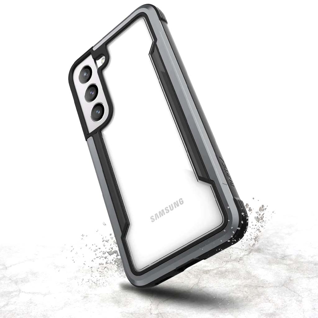 Prueba de caída de grado militar.Certificado para superar los estándares de prueba de caída de grado militar, MIL-STD-810G, para caídas de hasta 9.8 ft (10 pies) para tu teléfono Samsung. Combina policarbonato duro, goma suave y aluminio anodizado para formar la mejor funda protectora de Samsung.