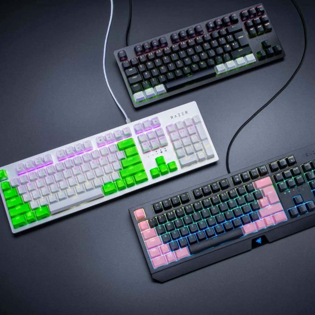 FUNCIONA CON DISEÑOS DE TECLADO POPULARES. El juego de actualización de teclas Razer PBT funciona con Razer y diseños estándar de 104/105 teclas de EE. UU. o Reino Unido, y viene con 120 teclas PBT de doble disparo y estabilizadores adicionales para teclados ópticos y mecánicos.