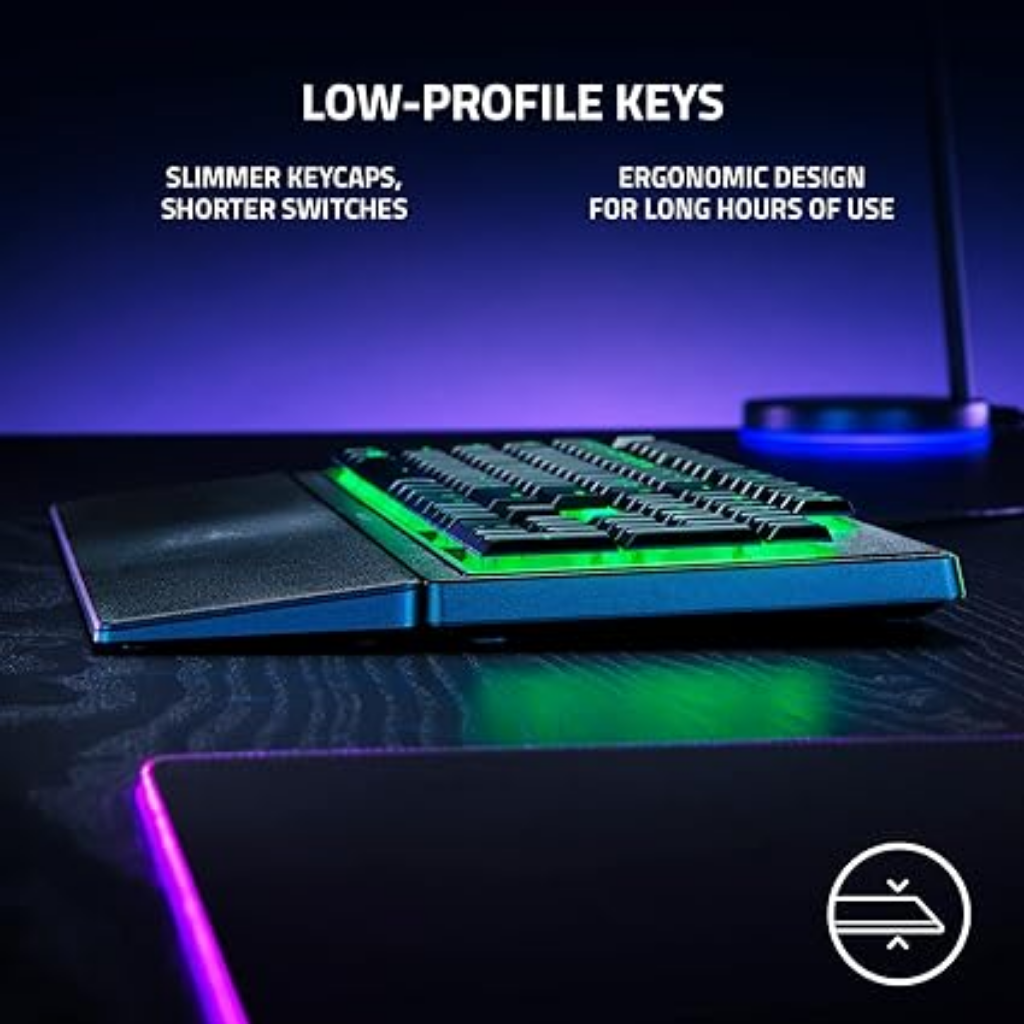 FINO. CON SONIDO DE CLICK. ERGONÓMICO. Te presentamos el Razer Ornata V3, un teclado gaming ergonómico de perfil bajo con tecnología Razer Chroma™ RGB. Mejora tu trabajo y tu juego con un teclado híbrido que combina lo mejor de ambos mundos, con un nuevo diseño ultrafino, teclas más duraderas y switches de membrana mecánica únicos.