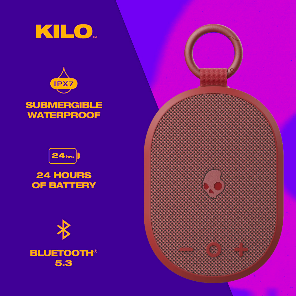Pequeño altavoz inalámbrico portátil El Skullcandy Kilo es un altavoz Bluetooth para exteriores que es pequeño y portátil, por lo que es una gran adición a tus elementos esenciales de playa o aventuras al aire libre.