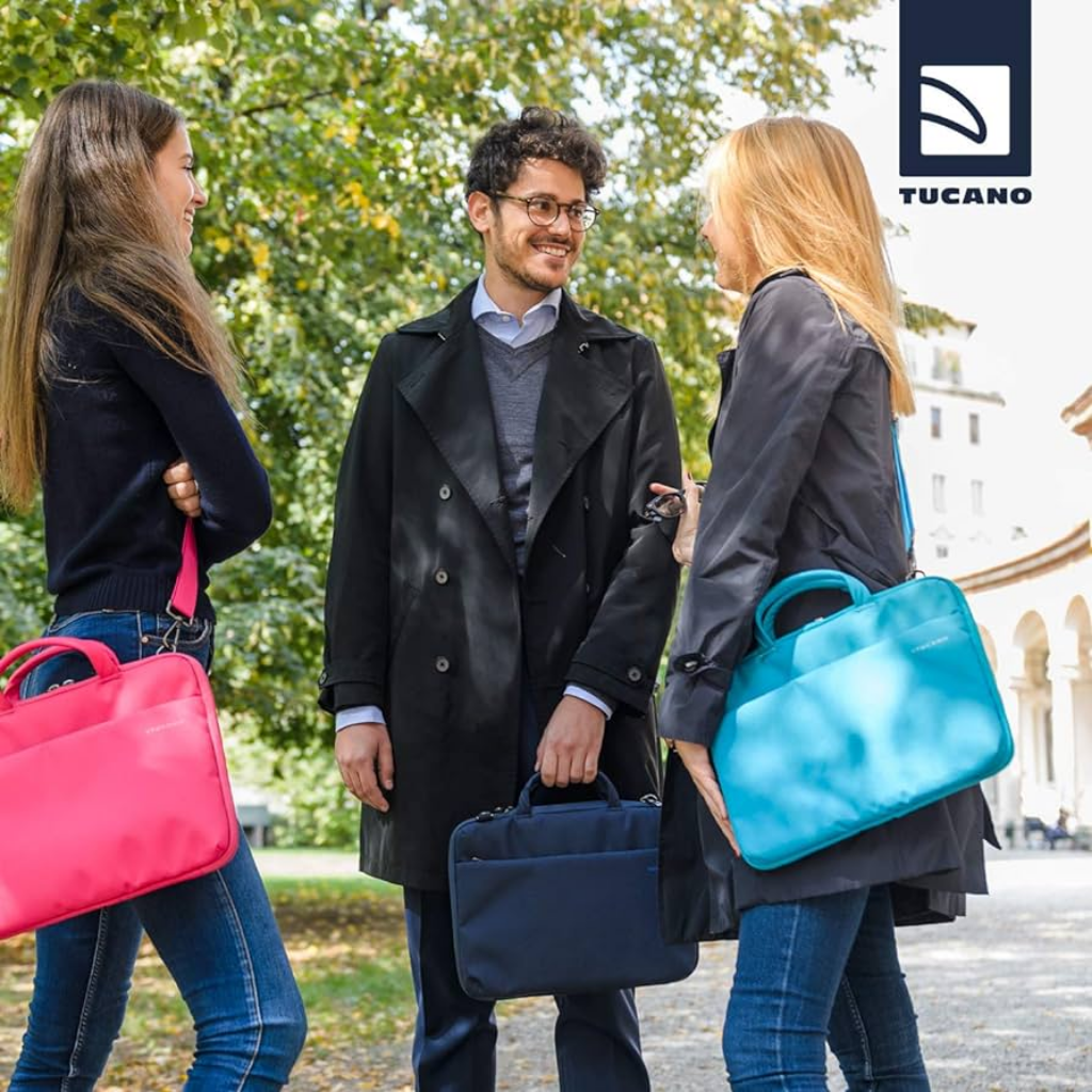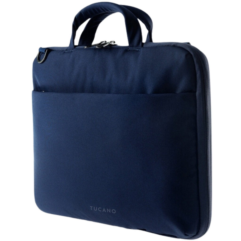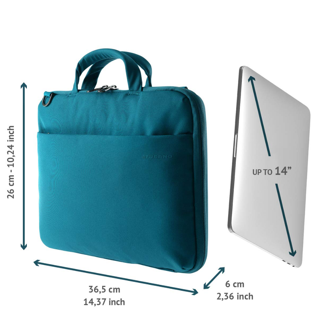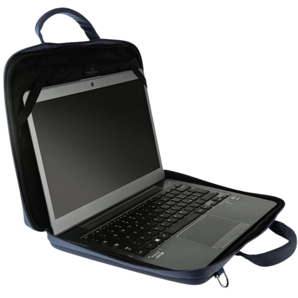 Bolsa para portátil de 14" y MacBook Pro de 14" Bolsa delgada ultraprotectora para computadora portátil de 14" y MacBook Pro de 14'' hecha con tela producida a partir de plástico reciclado y con un panel trasero semirrígido. El espacioso compartimento interior, accesible a través de la apertura con cremallera en tres lados de la bolsa, le permite Trabaje con su dispositivo asegurando los bordes con las dos bandas elásticas de las esquinas. Viene con una correa para el hombro acolchada y extraíble.