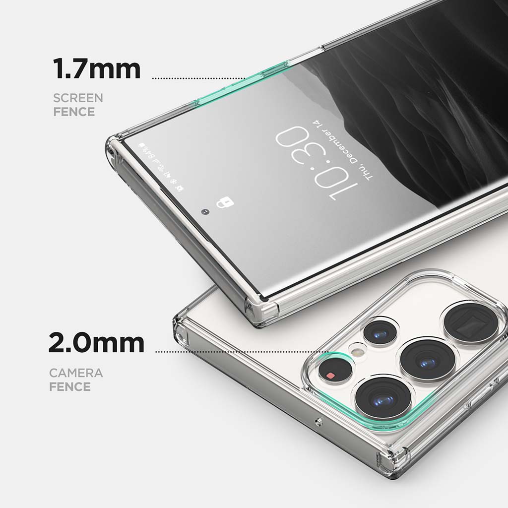 Probado contra caídas para cumplir con los estándares VRS para protección garantizada contra caídas – Los bordes elevados protegen la pantalla frontal y la cámara cuando se colocan sobre superficies planas