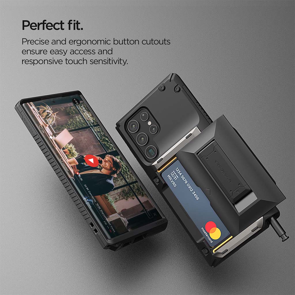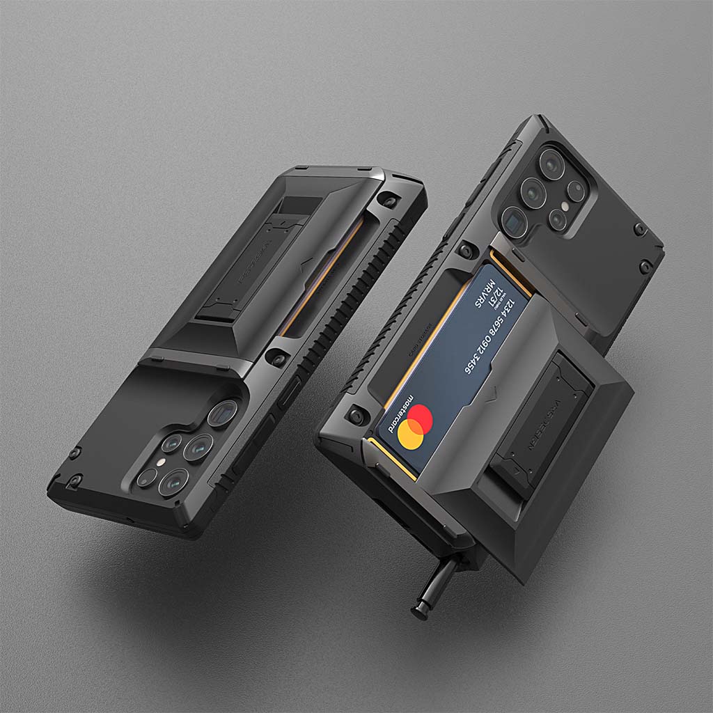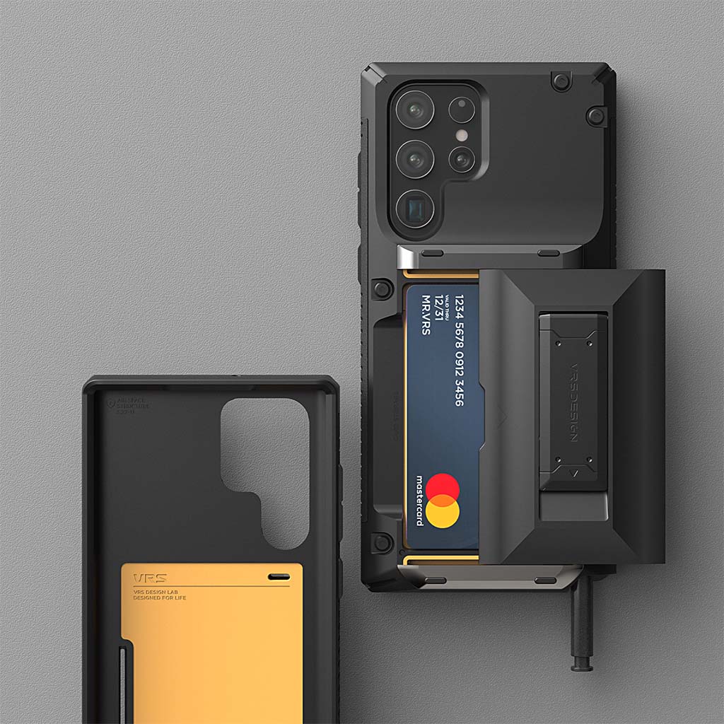 El estuche VRS Design Damda Glide Hybrid para Samsung Galaxy S22 le permite acceder a sus tarjetas en un instante a través de un compartimento trasero deslizante semiautomático que puede contener de 3 a 4 tarjetas o efectivo. El exclusivo diseño híbrido cuenta con un pie de apoyo integrado que está diseñado ergonómicamente para sostener su teléfono de manera segura mientras ofrece múltiples posiciones de visualización para su entretenimiento favorito. El primer mecanismo deslizante semiautomático del mundo, le permite abrir el compartimento deslizante con un solo empujón. El mecanismo de bisagra con resorte responde inmediatamente con un empujón, lo que permite a los usuarios acceder a sus elementos esenciales sin dificultad. El compartimento para tarjetas con una ranura empotrada facilita el levantamiento de sus tarjetas cuando las necesita. El Damda Glide Hybrid es de doble capa que consta de un TPU flexible que absorbe los golpes y un marco de policarbonato que ofrece protección contra caídas. Estas capas resistentes a los impactos permiten a los usuarios viajar ligeros mientras protegen su dispositivo. Los bordes elevados protegen la pantalla y la cámara de arañazos cuando se colocan.