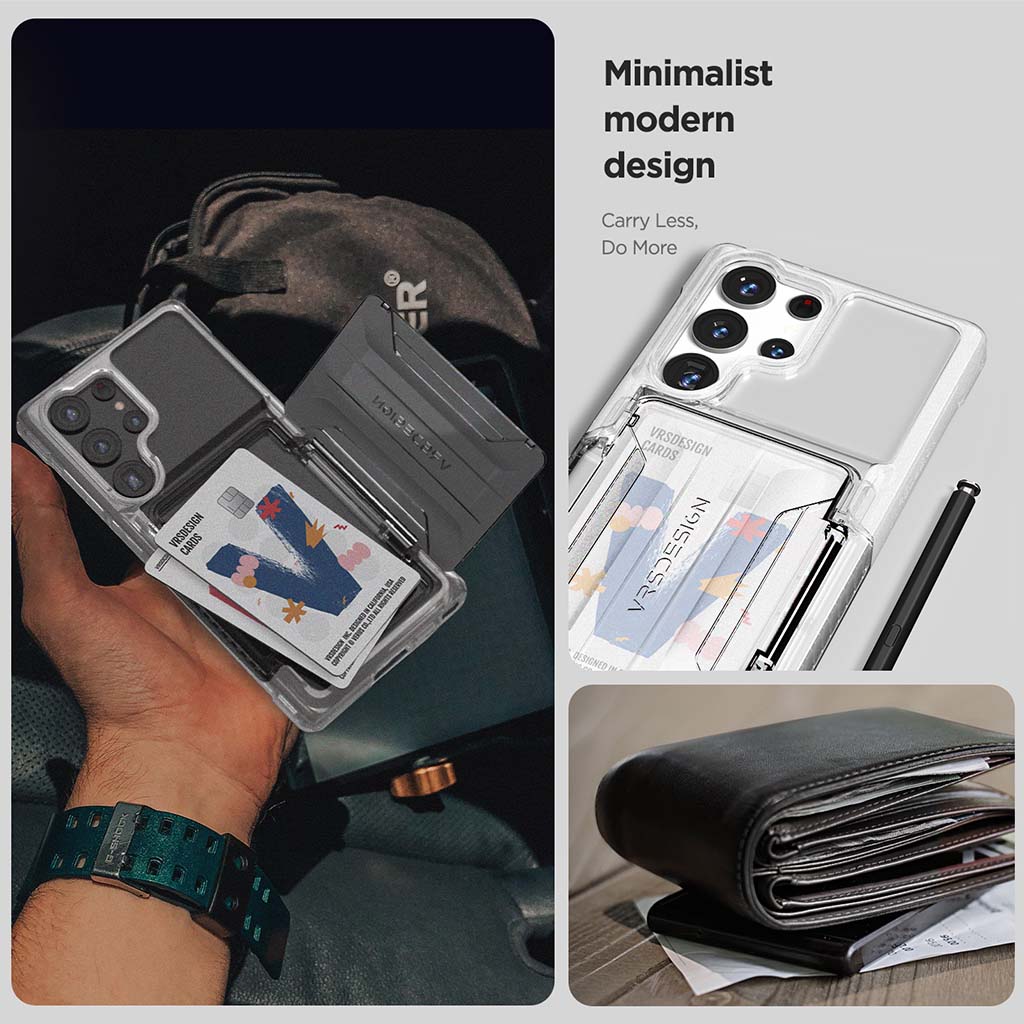 Almacenamiento resistente suficiente para 2 tarjetas con carga inalámbrica limitada.