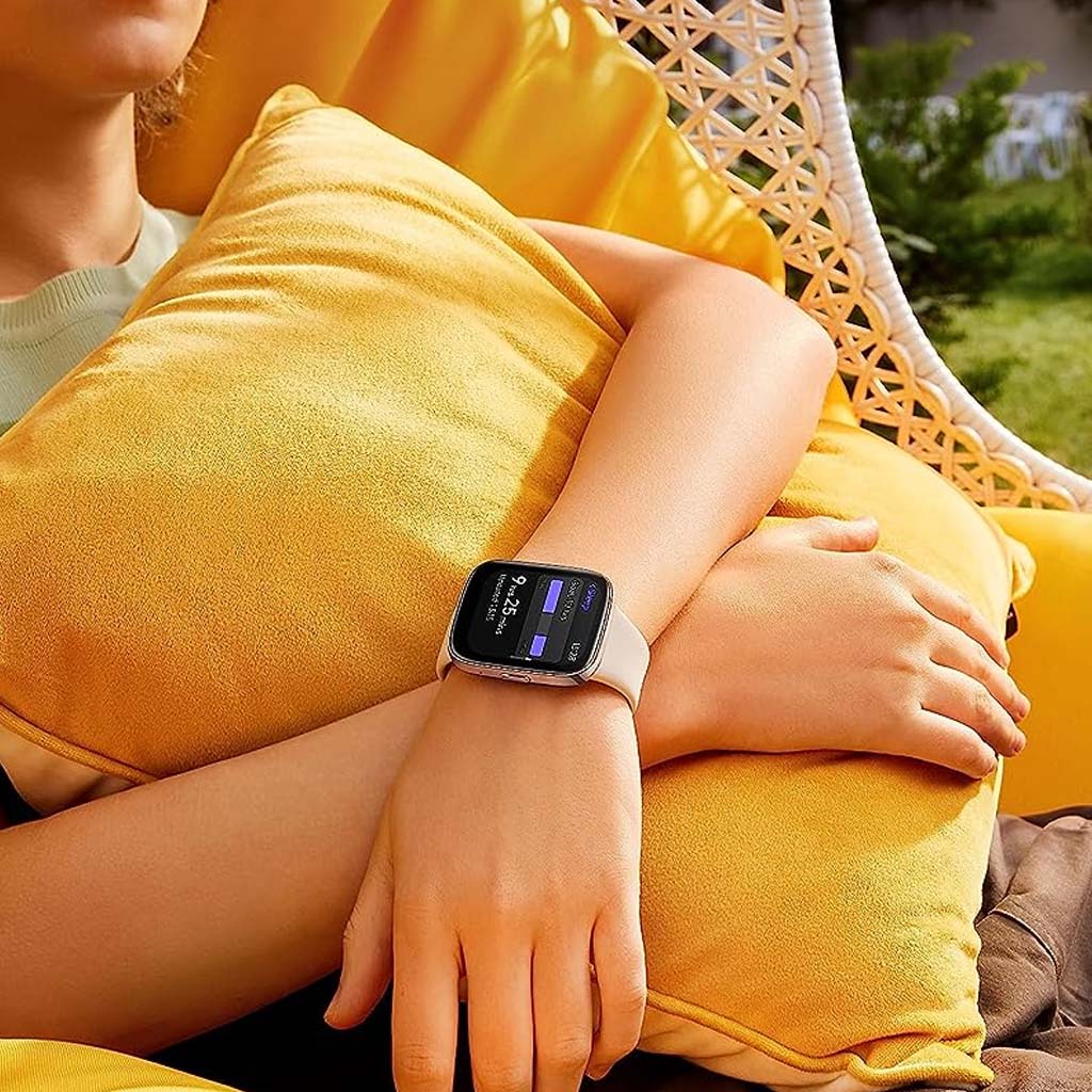 Gran pantalla de 1,83" mas facil de ver.La nueva pantalla irisada de 1,83" de gran tamaño cuenta con colores vivos, una pantalla nítida y una visión impresionante, lo que te permite verlo todo de un vistazo, desde las notificaciones de mensajes hasta los datos de entrenamiento. El cristal curvo de alta resistencia de 2.5D ofrece un aspecto más elegante y una mayor resistencia al desgaste