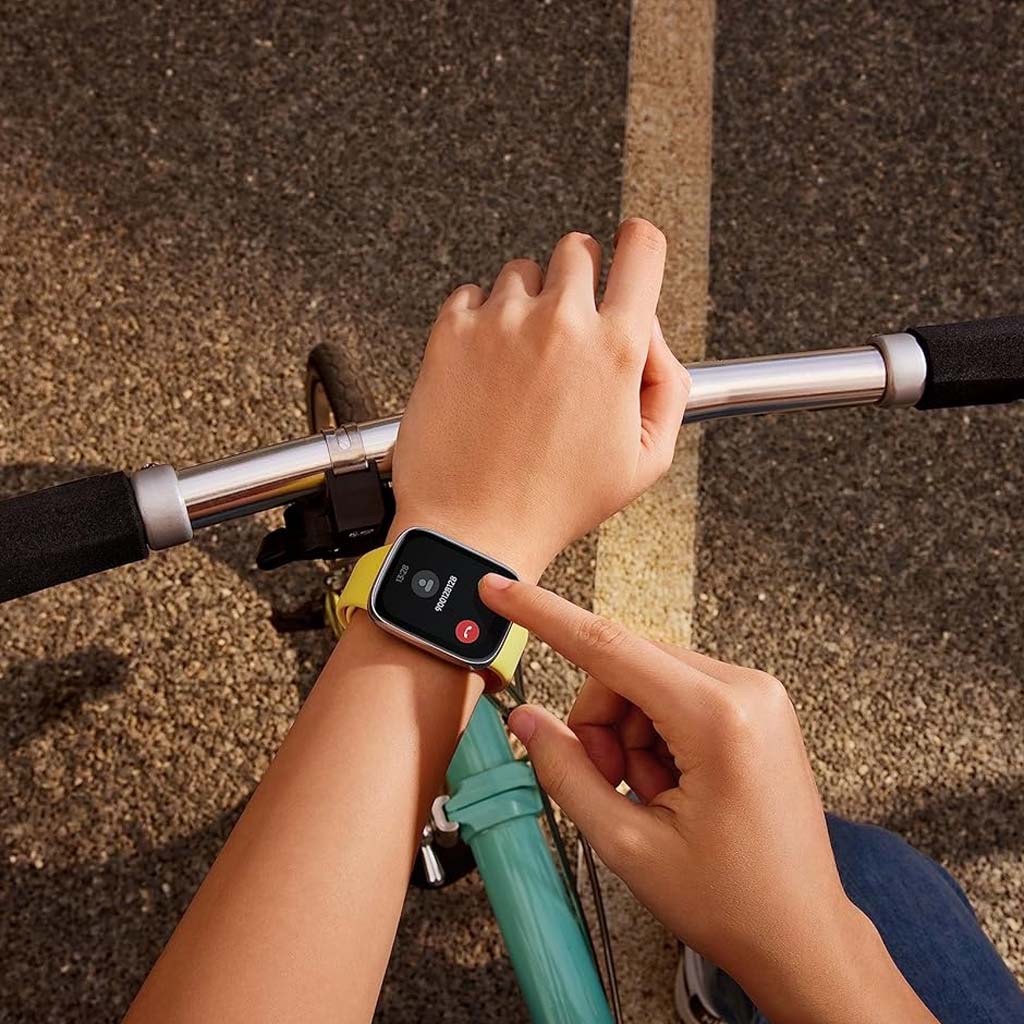 Llamadas de voz por Bluetooth* Facilidad y comodidad Conecta el reloj a tu smartphone mediante Bluetooth. Las llamadas se pueden contestar en el reloj con un solo toque. Ya estés trabajando o haciendo ejercicio, puedes levantar la mano para responder llamadas de forma más práctica e interesante.