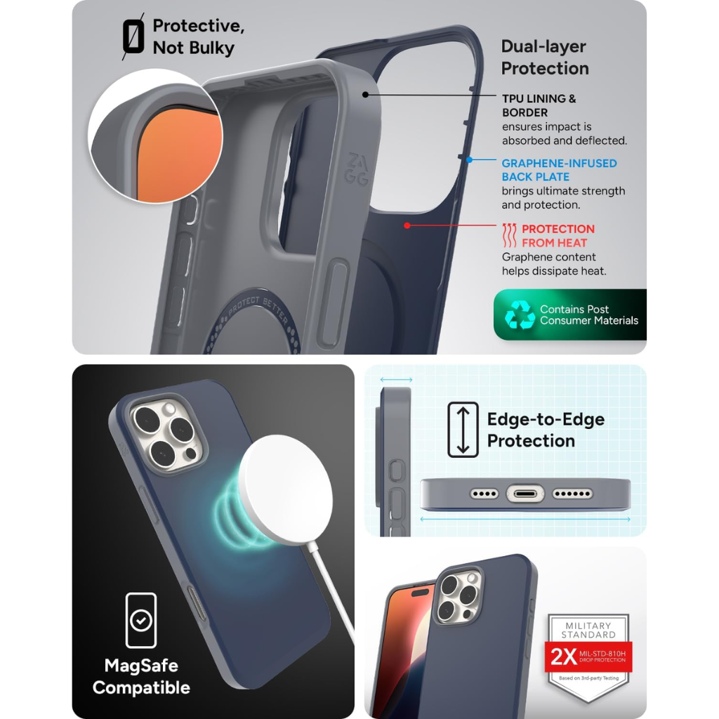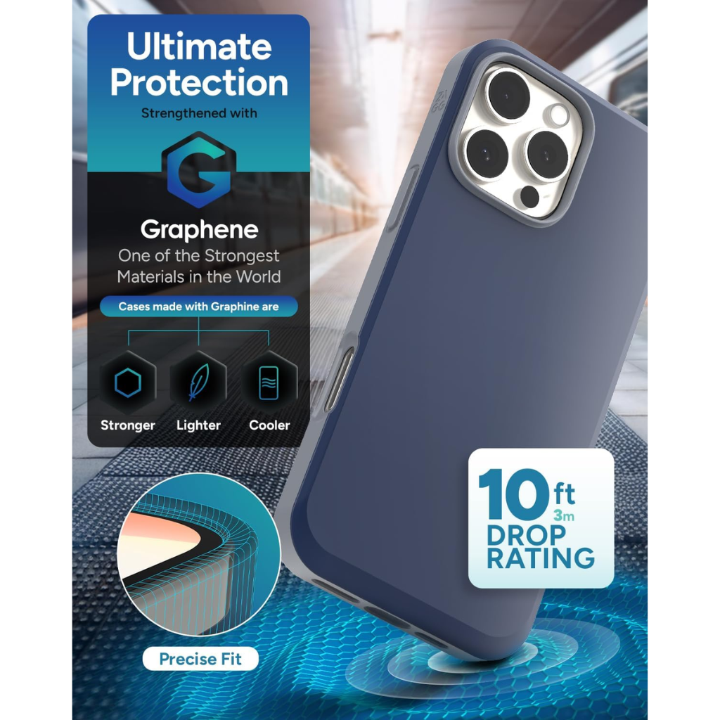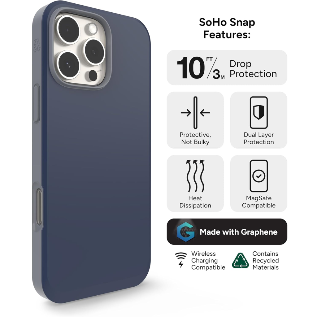 Presentamos la funda con protección de doble capa con una placa posterior con infusión de grafeno, el estuche de la serie SoHo Snap de ZAGG brinda protección confiable contra caídas de 10 pies y compatibilidad perfecta con MagSafe. Profesional y de primera calidad, la funda SoHo Snap de ZAGG está inspirada en la arquitectura icónica, la cultura diversa y el espíritu único del barrio SoHo de la ciudad de Nueva York. Esta funda colorida de dos tonos ofrece una protección absoluta contra caídas de hasta 10 pies (3 metros). Diseñada con precisión con un diseño de doble capa, SoHo Snap incorpora una placa posterior con infusión de grafeno y un borde e interior de TPU. Con la función de disipación de calor, Denali ayudará a mantener su dispositivo fresco, incluso durante un uso intenso o en entornos de alta temperatura.